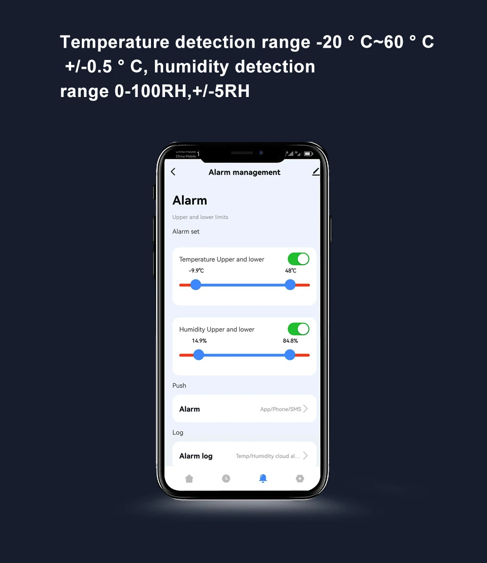 -This sensor can detect the real-time temperature & humidity, In App, you may see the current value or the history record to know about the temperature & humidity changing aroundyou