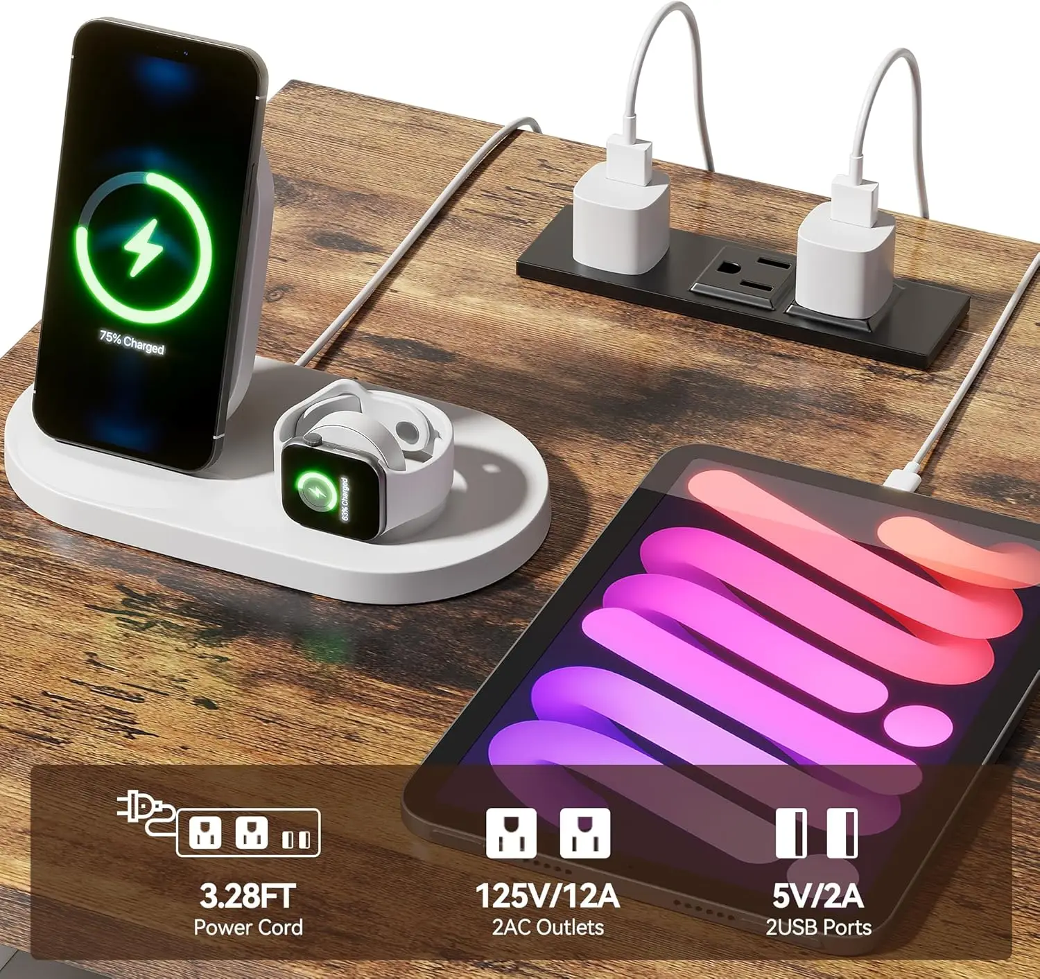 Enhance your home with this versatile set of two nightstands that combine functionality and style. Key features include: 1. **Convenient Charging Station**: Each nightstand is equipped with a built-in charging station, allowing you to easily charge smartphones, laptops, and other devices right by your bedside or sofa. This feature eliminates the need for extra cords and keeps your space organized. 2. **Spacious Storage Solutions**: Designed with a roomy storage cabinet in each table, these nightstands offer ample space to store essentials such as books, glasses, personal items, or decor. Whether used in the bedroom as bedside tables or in the living room as side tables, they help maintain a clutter-free environment. 3. **Farmhouse-Modern Design Blend**: Featuring a unique combination of farmhouse charm and modern aesthetics, these tables boast clean lines and minimalist details that seamlessly integrate into various room decors. The white finish adds a fresh touch to any setting. 4. **Durable Construction**: Crafted from high-quality materials including FSC-certified wood frames, these nightstands ensure stability and longevity for everyday use. Their sturdy build supports heavy items without wobbling. 5. **Easy Assembly Process**: The set comes with all necessary tools and clear instructions for hassle-free assembly. You can quickly set up both tables without professional help. Ideal for bedrooms, living rooms, offices, or as sofa-side companions.