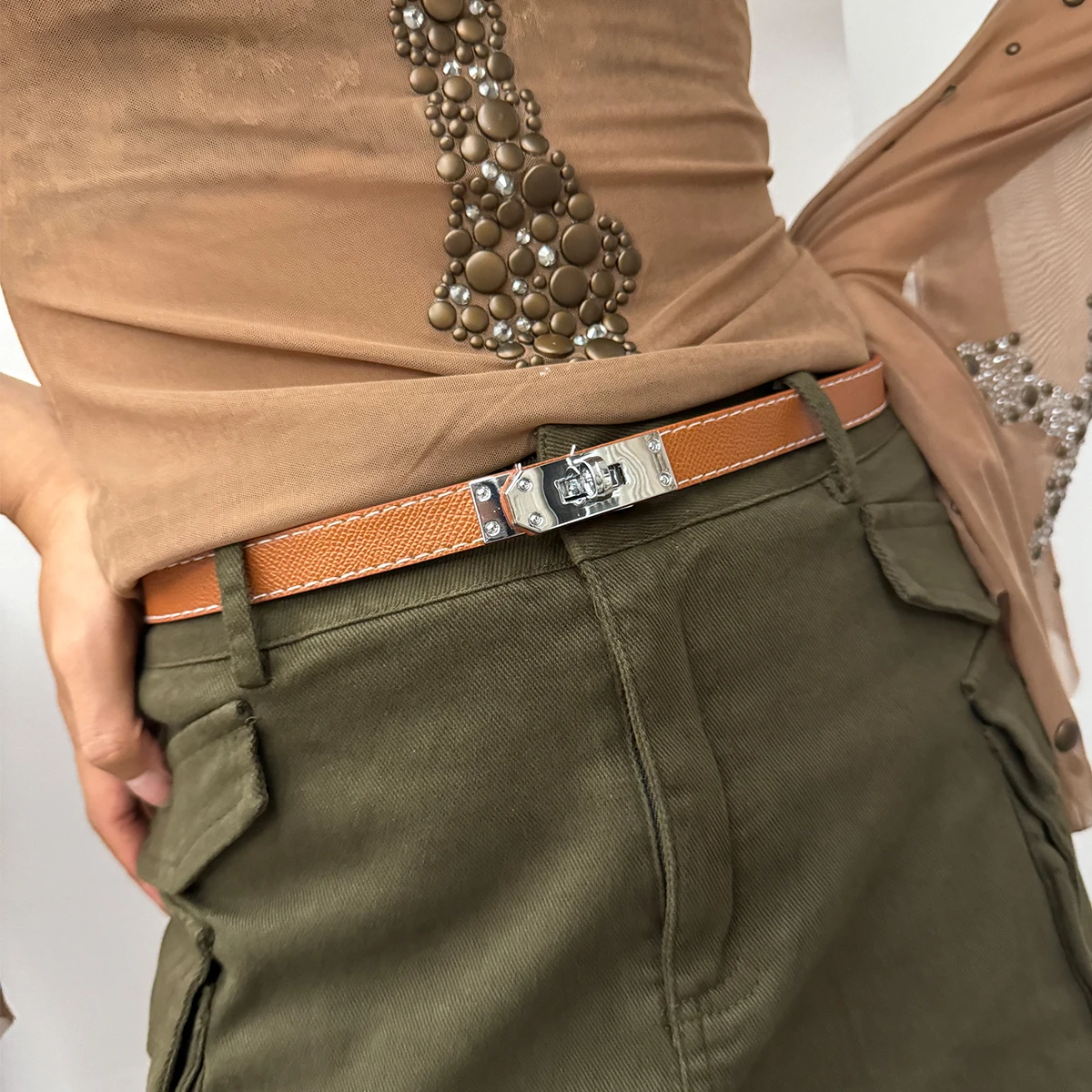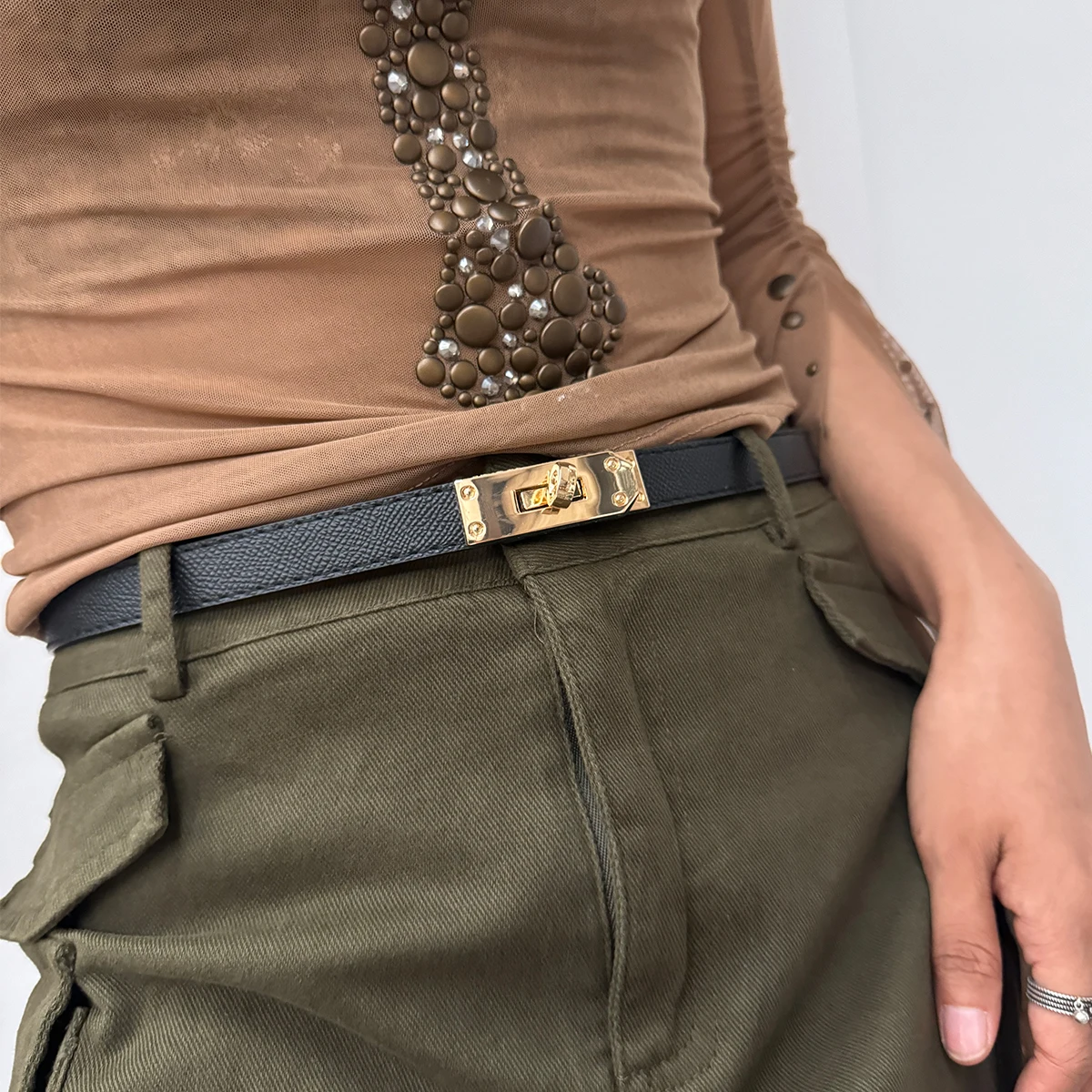 Fashion Adjustable Thin Belt Luxury Camel PU Leather Female Designer Girdle Korean Corset Metal Buckle Belts For Women Black