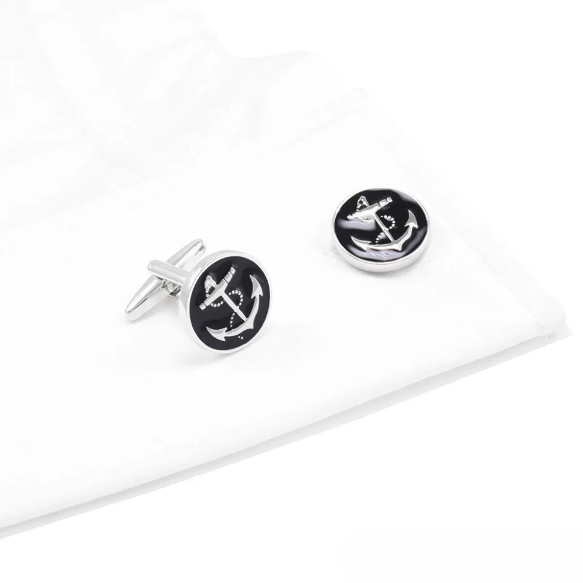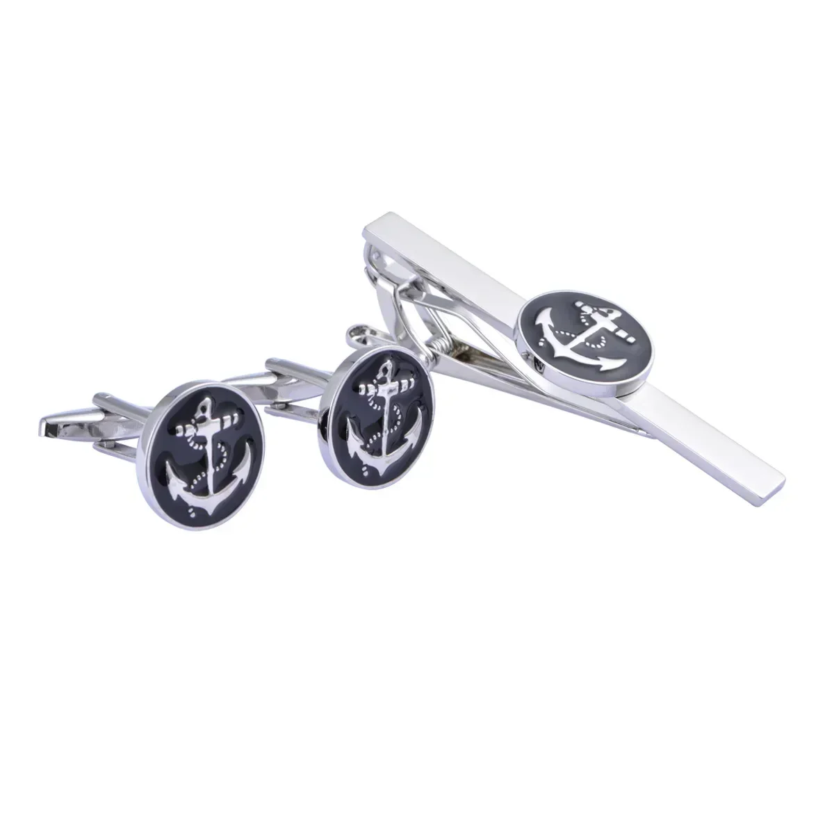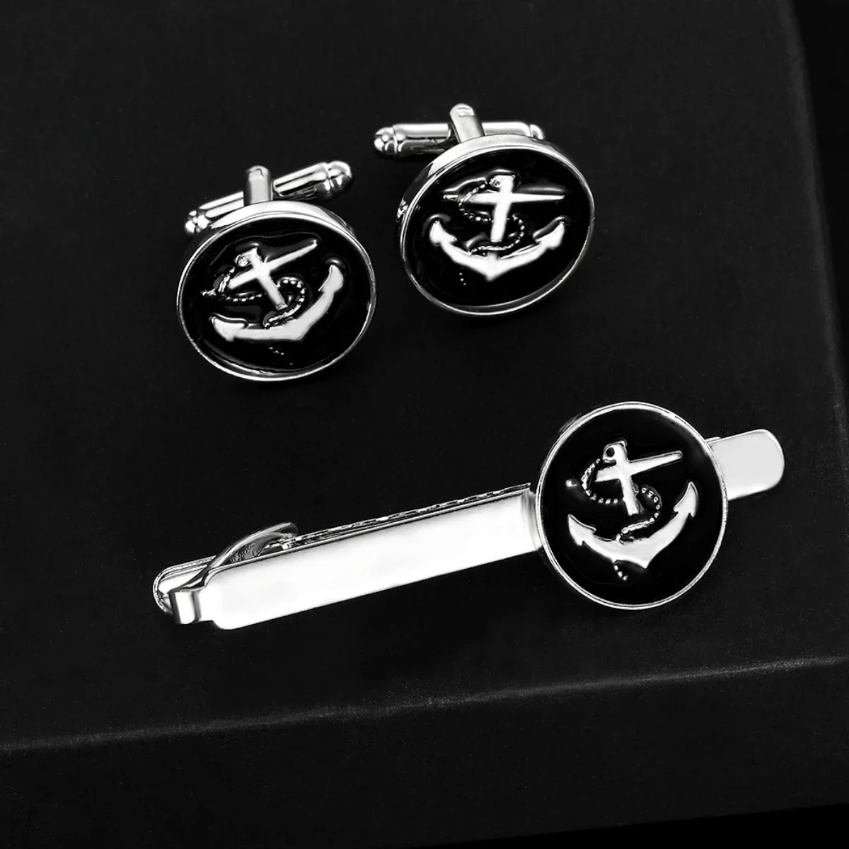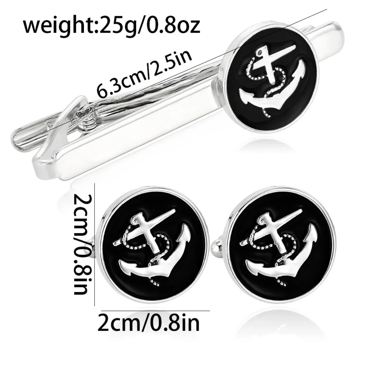 Fashion New French Style Cufflinks Blue Black Gold Color Anchor Cuff Links Tie Clip Business Cocktail Party Men’s Accessories