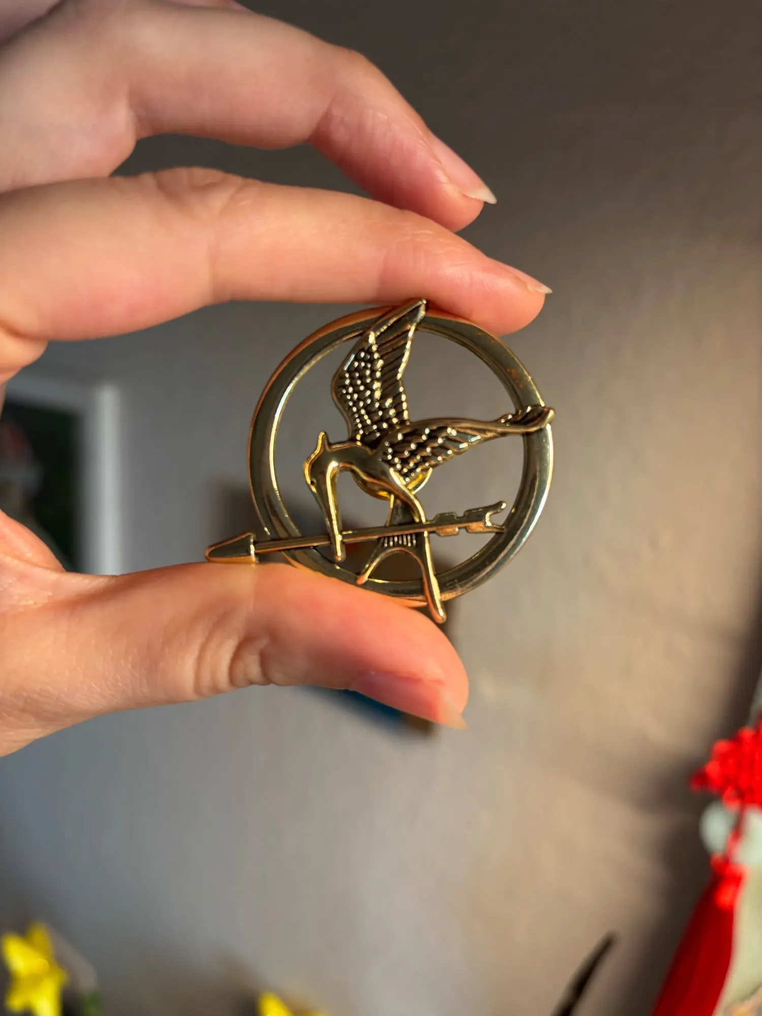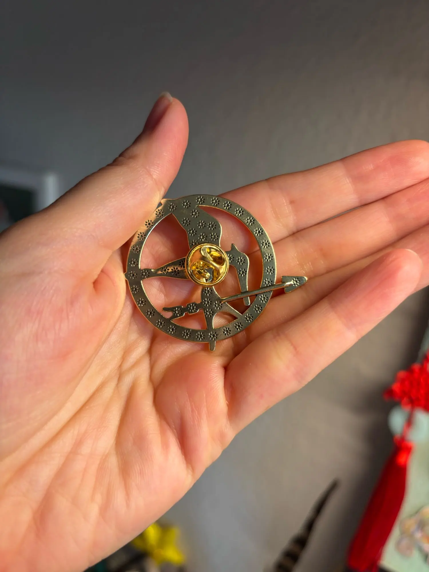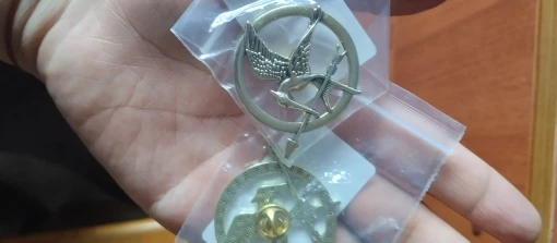 The sinsajo pin is the same as in the photo, it comes with a good strap for the backpack that prevents it from falling. Everything is super good, just that it took a bit longer than expected to arrive. But everything is super good.