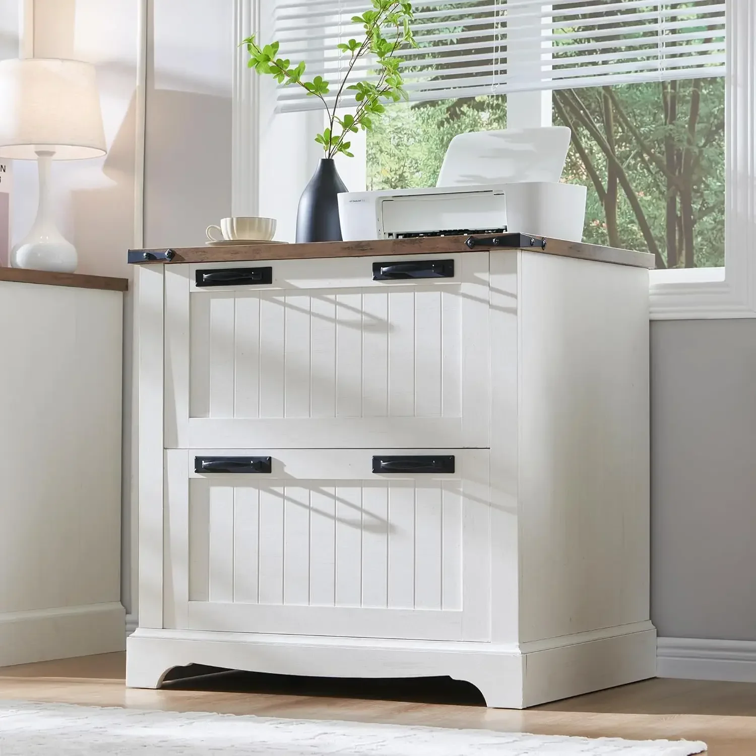 File Cabinet with 2 Drawers, Farmhouse 30″ Filing Cabinets with Hanging File Folders for A4/Letter/Legal Size Documents, Office Storage Cabinet for Study Room, Living Room (Antuique White)