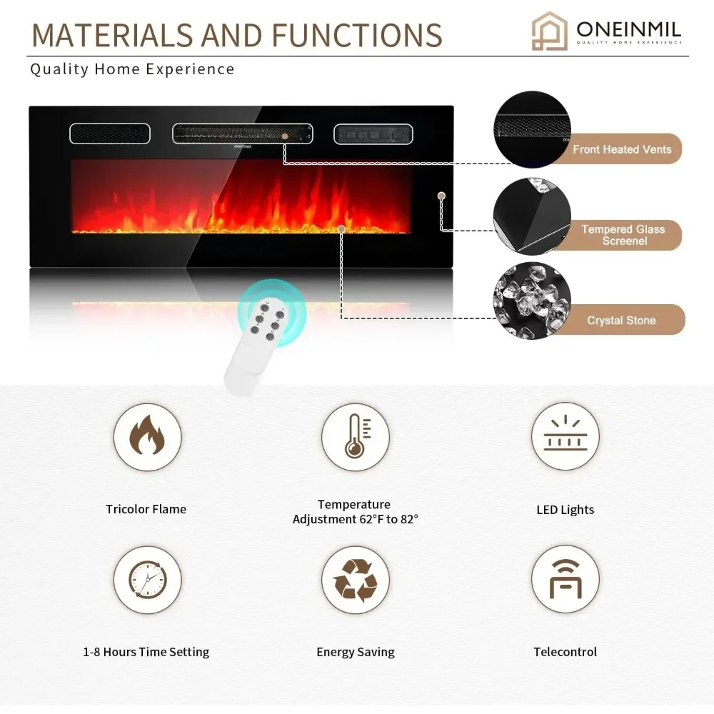 - 【Comfort & Safety & Energy Saving Electric Fireplace】A 36 inch electric fireplace can make the room very warm. The temperature can be adjusted from 62 ° F to 82 ° F or from 17 ° C to 27 ° C, depending on your heating needs. Overheat protection and CSA&ETL certification ensure your safety. Equipped with an automatic shutdown timer, which can be set up to 8 hours.