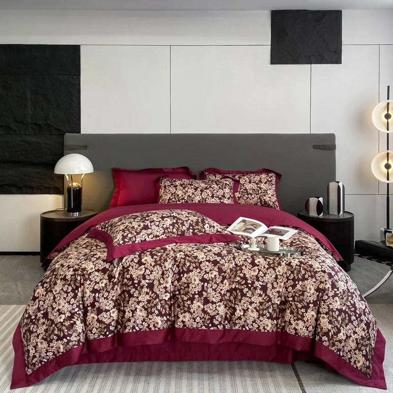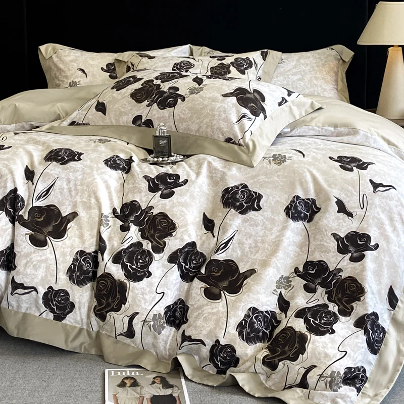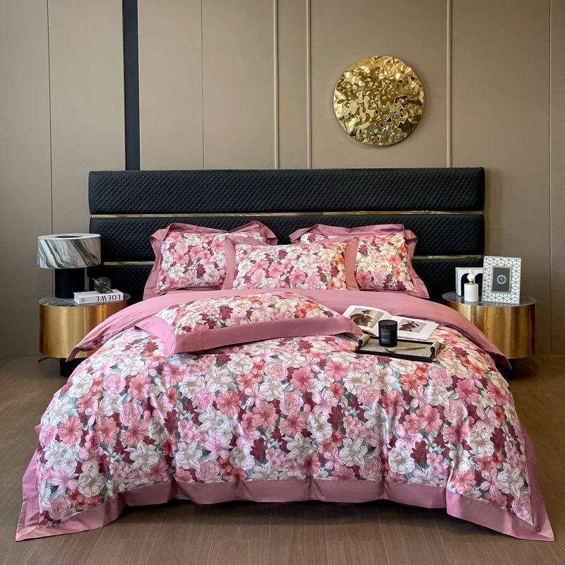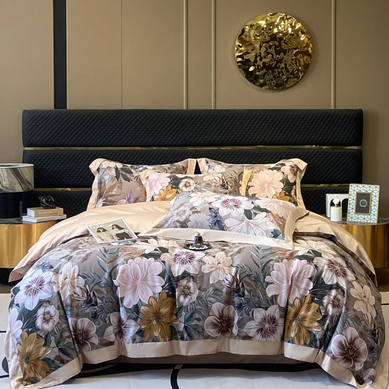 Floral Print 600TC Egyptian Cotton Bedding Queen King Comforter Cover Soft Duvet Cover Set Flat/Fitted Bed Sheet Pillowcases
