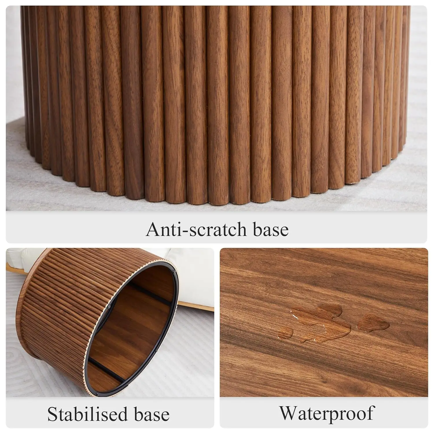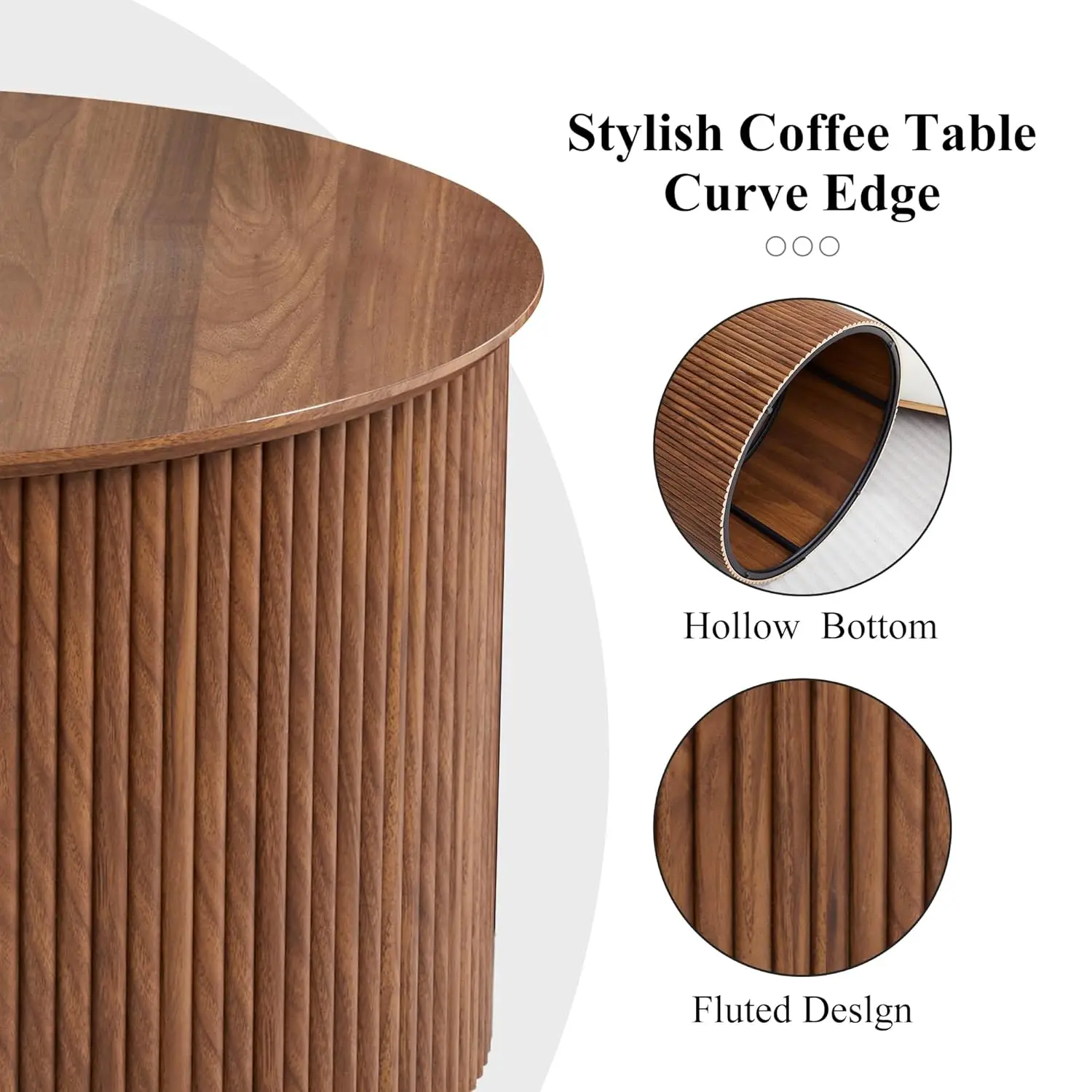 Three Stylish Color Options: Available in Walnut, Black, and Natural Wood, these fluted coffee tables fit a variety of home styles—from modern minimalist to rustic farmhouse. Whether you’re furnishing a cozy apartment or a large family living room, ’s round wood coffee table set brings warmth, balance, and sophistication to your home décor.