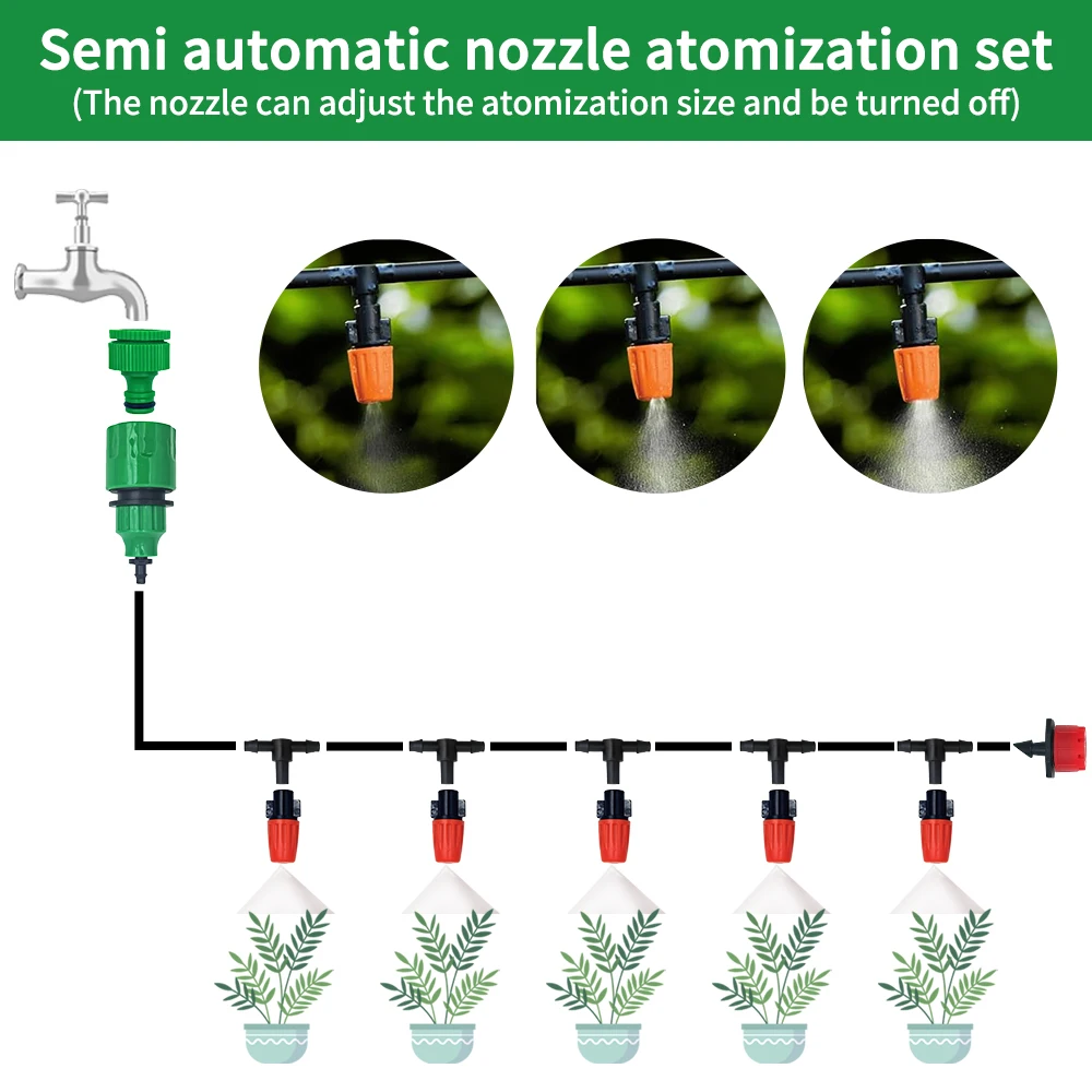 Fog Nozzles Irrigation Kit 5M-20M Garden Automatic Spray Misting Plant Watering System with 4/7 PE Hose and Connector
