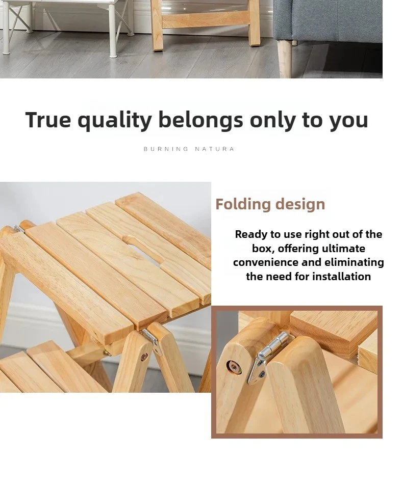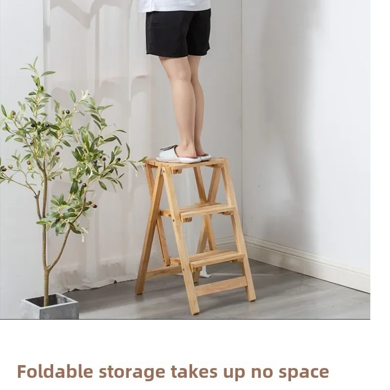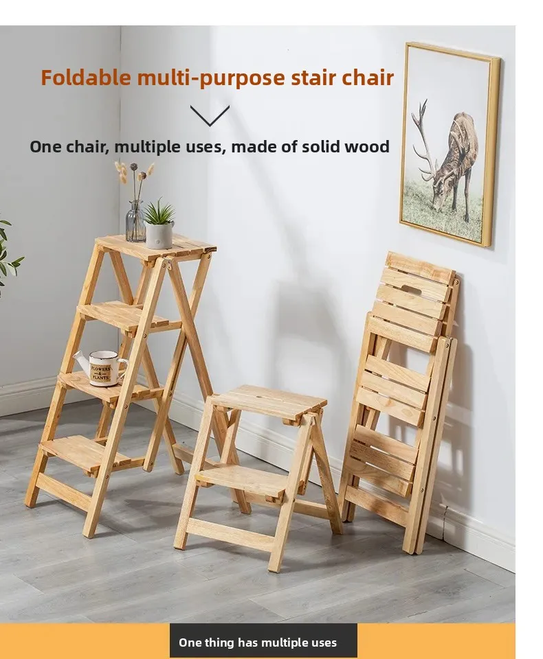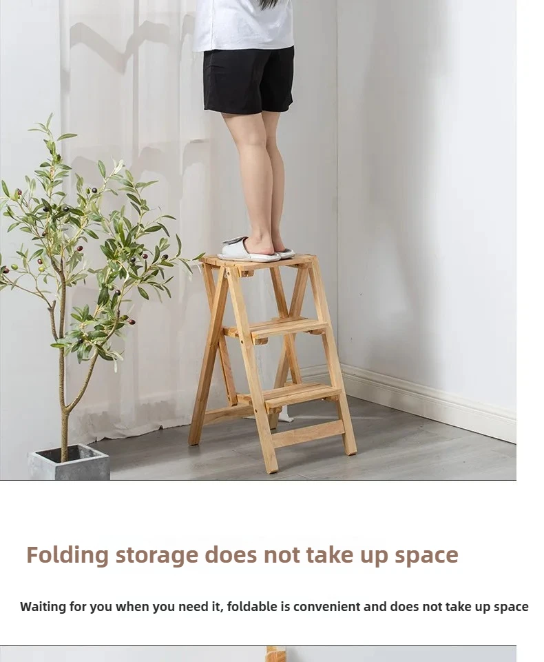 Folding Multi-function Ladder Stool Solid Wood Free Installation Step Stool Province Space Two or Three Steps Home Ladder Chair