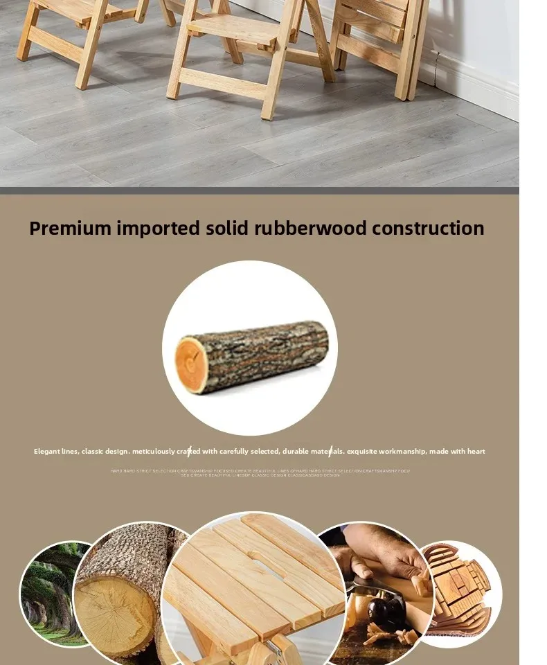 Multi-Function Solid Wood Folding Ladder Stool, No-Assembly Step Chair for Home or Outdoor Use