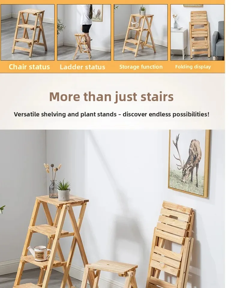 folding step stool, solid wood ladder stool, no-install step chair, 2-step wood ladder, 3-step wooden stool, space-saving step seat, weatherproof indoor ladder, compact climb stool, portable step chair, home utility ladder