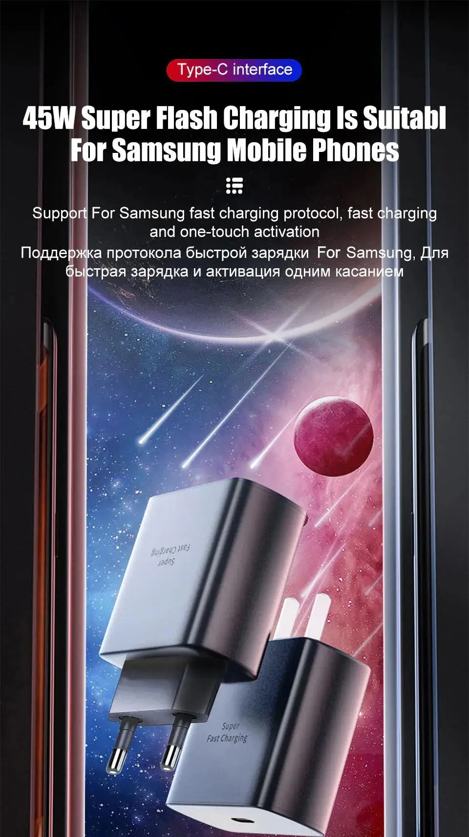 10 reviews for For Samsung 45W Super Fast Charger For Samsung Galaxy S24 S20 S21 S22 S23 Ultra Plus A54 5G USB Type C Charger Fast Charge Cable