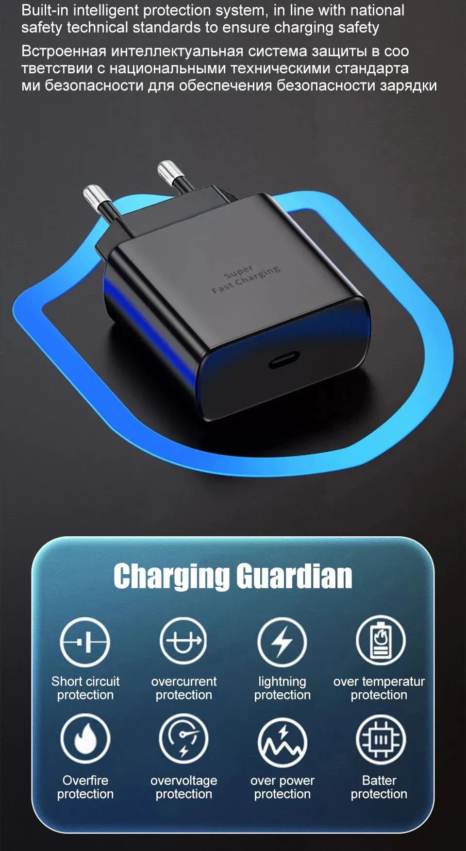 Compatible, charges super fast, meets the established standards.