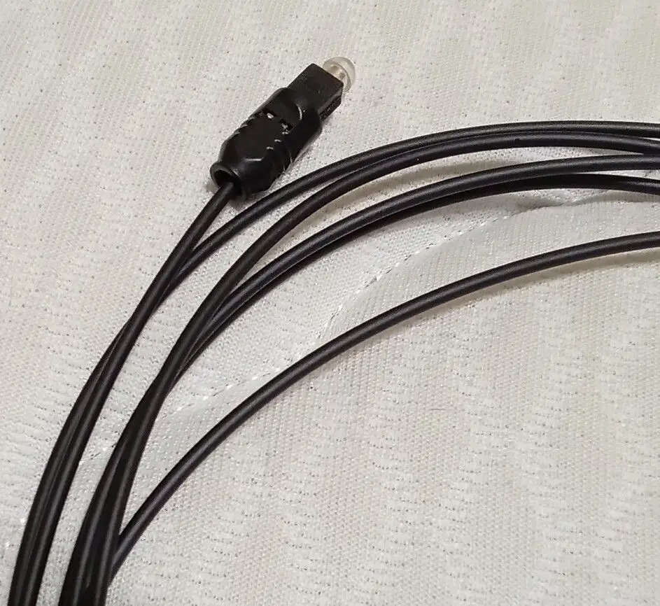 The picture makes the cable appear thicker than it is, it’s the standard super thin cable, but that doesn’t really matter for toslink. It’s easier to fit in tight spaces, but getting it to stay put is hard as it’s too small and light to stay in place very well.
