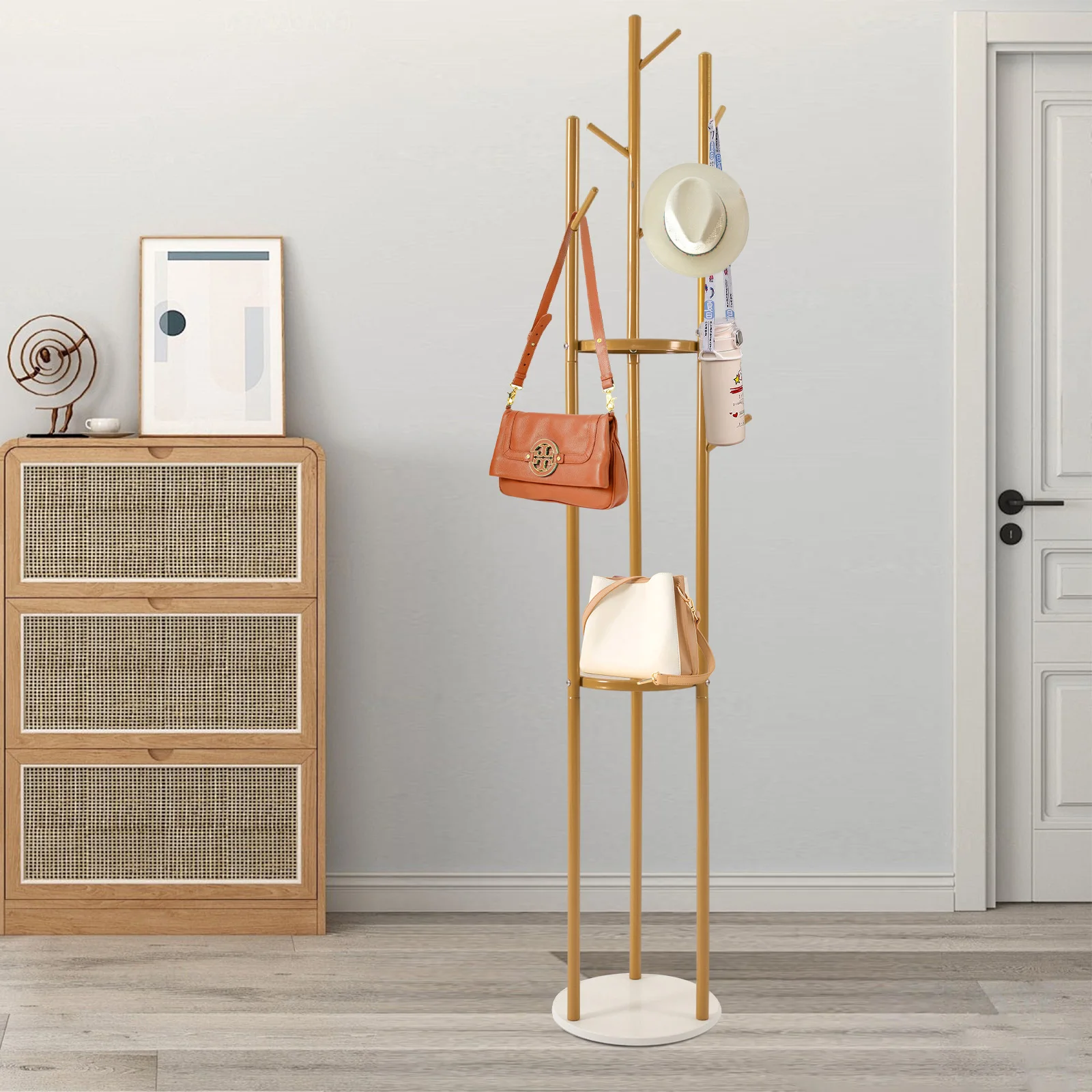 A great coat rack is not only a caring steward for your clothes, but also an artistic accent to your home life. Our coat rack is designed for hanging clothes, hats, bags, scarves, and other items in an ordered manner. It is made of high-quality material, which is not only beautiful but also can be used for a long time. It can effectively help you hang and organize various types of clothes and solve the storage problem of a small house.