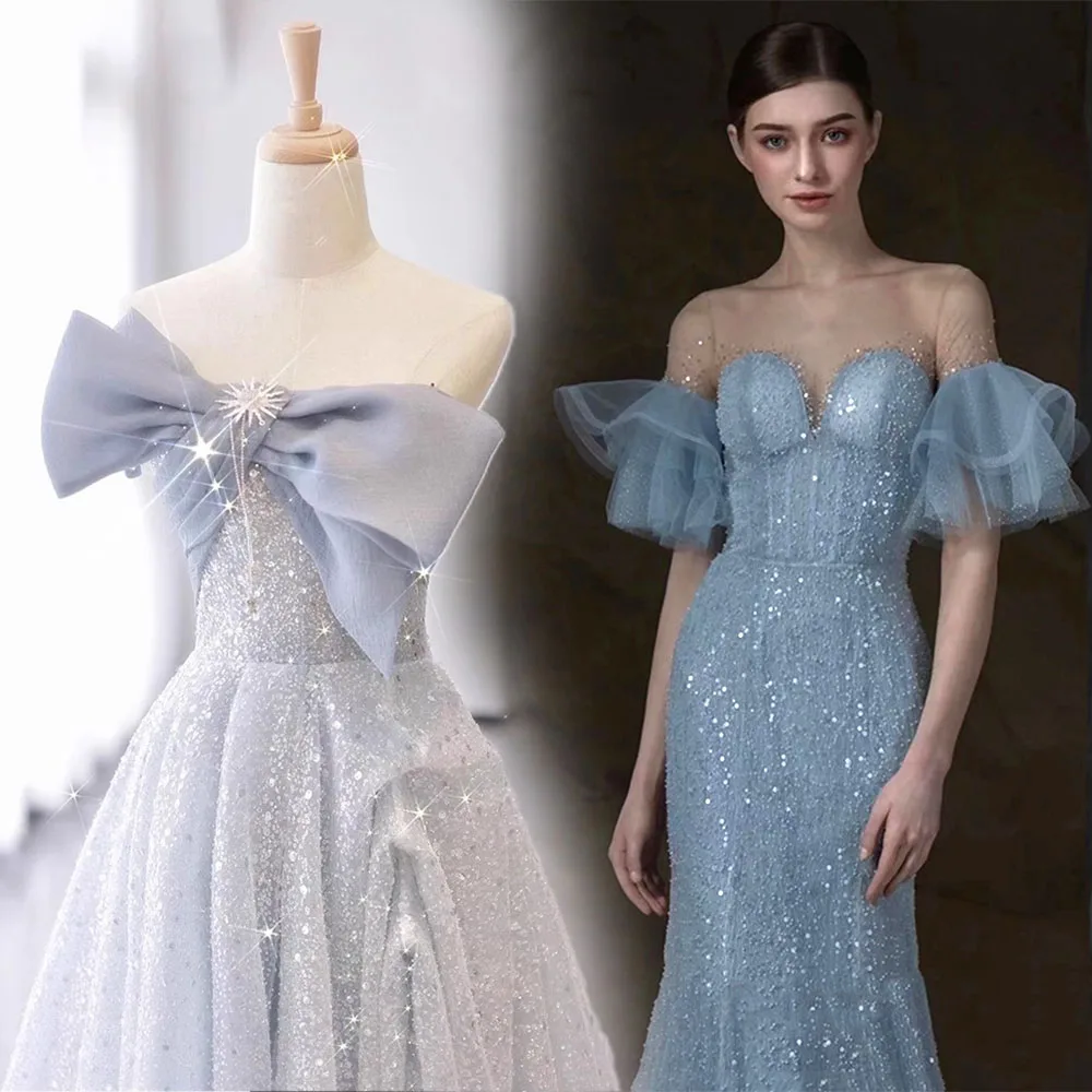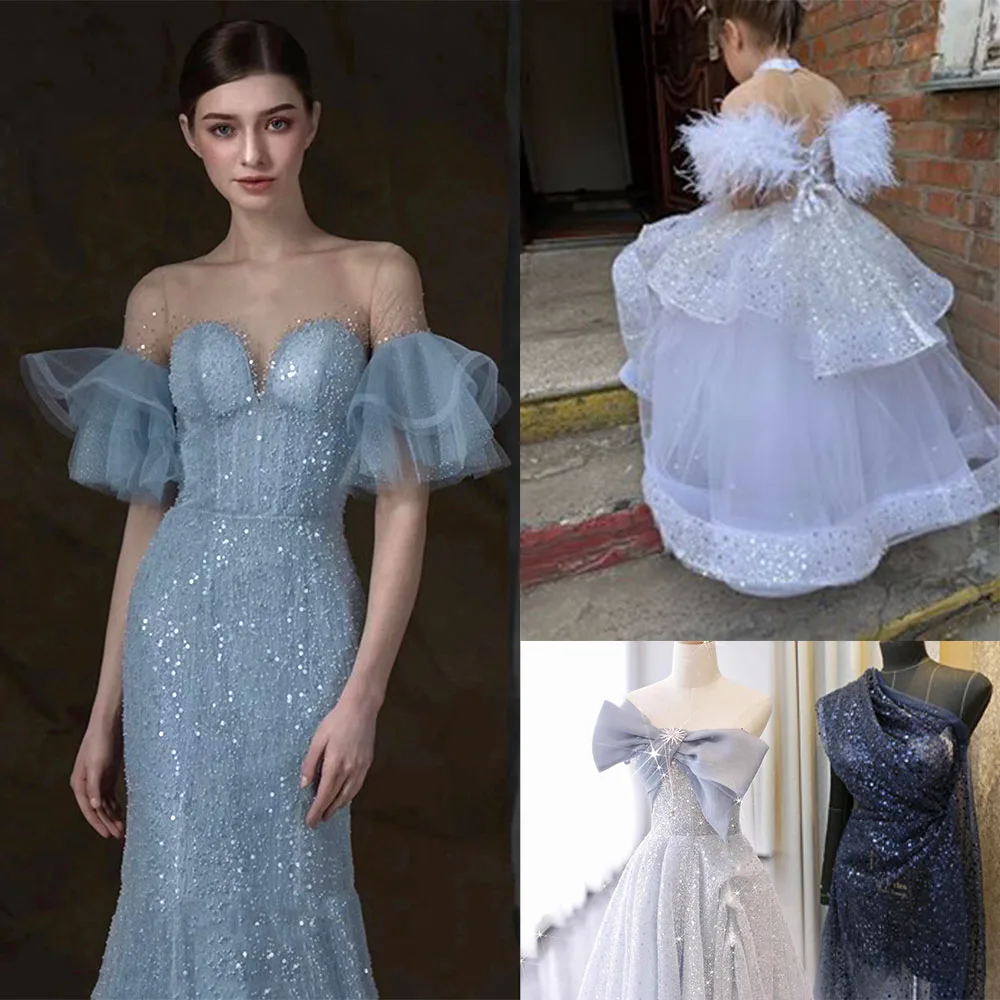 Versatile Use: Sequin fabric used for wedding gowns, bridesmaid gowns, prom dresses, maternity wear,evening dresses, robe,dance costumes, lingerie, trim work, stage costumes, Halloween or Christmas costumes, cosplay, tops, garment fabric, bodice, curtains and etc.