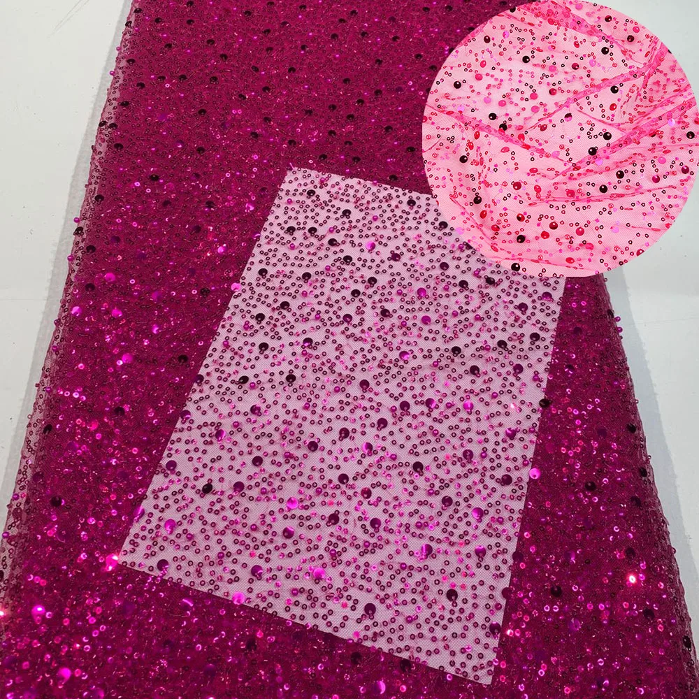 Sequin Bead Lace Fabric: Made of high density sequin and bead fabric, round sequins and pearl bead are embroidered on polyester mesh, the sequin fabric is shiny and sparkle in the light.