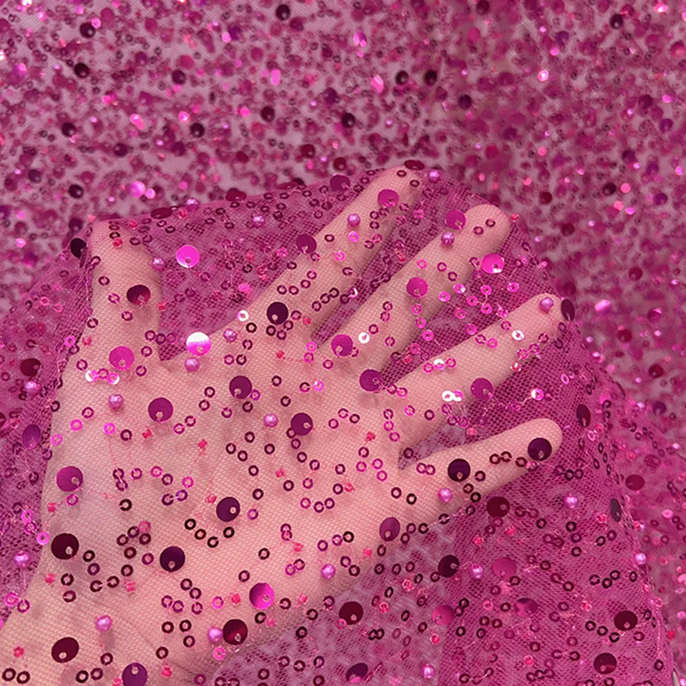 French Style Sequin Mesh Lace Fabric Pearl Bead Heavy Craft Tulle Soft Net For Sewing Women Luxury Dress Robe Trailing Trimming