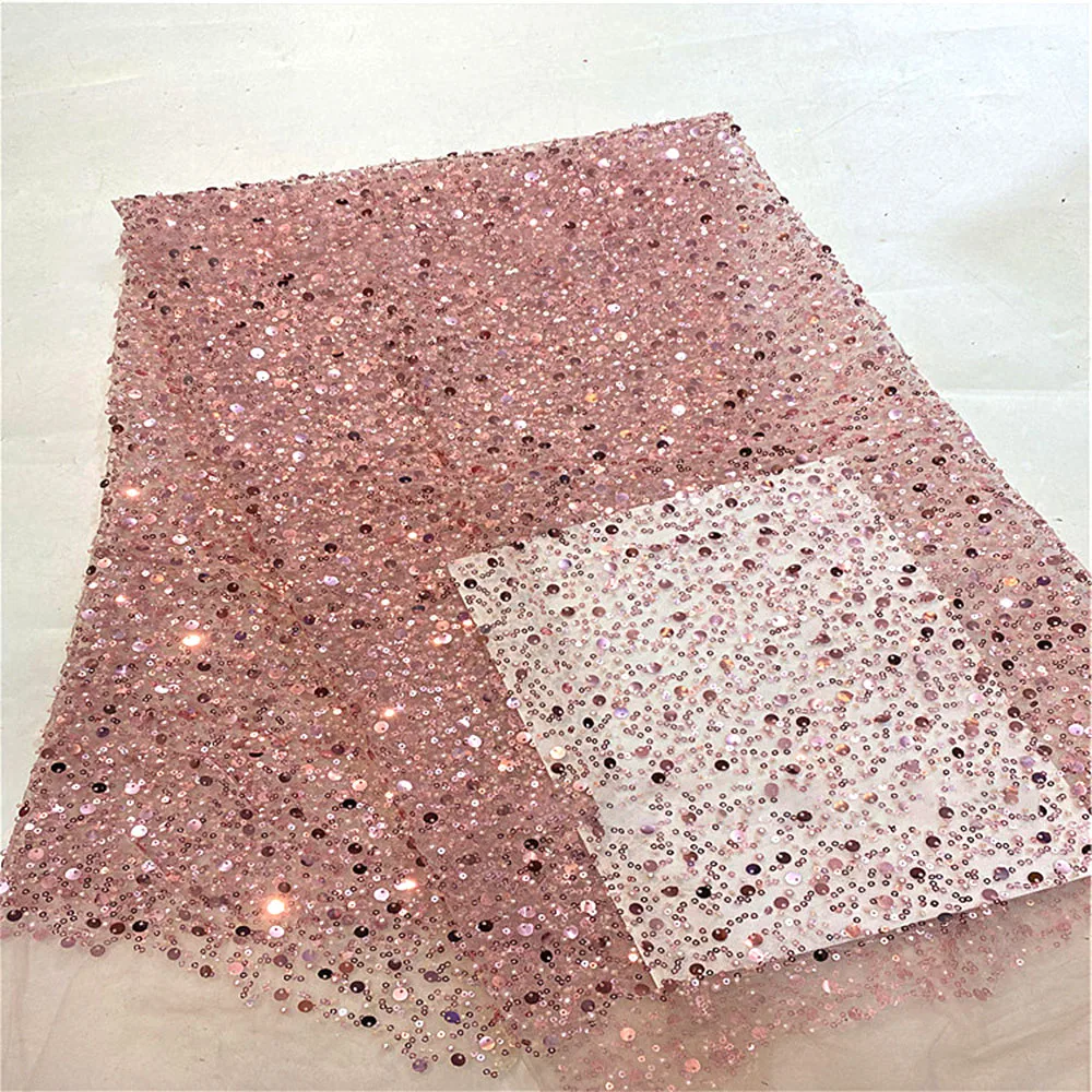 2 reviews for French Style Sequin Mesh Lace Fabric Pearl Bead Heavy Craft Tulle Soft Net For Sewing Women Luxury Dress Robe Trailing Trimming