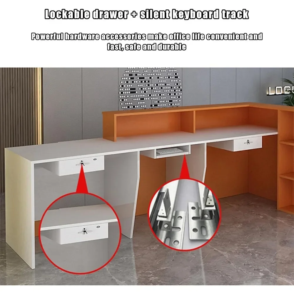 - 【Sturdy Structure】Our front desk is made of 1.8cm high-density fiberboard, which has a sturdy and durable structure. Its surface is made of elastic paint material, ensuring excellent weather resistance and water resistance, suitable for long-term use. The drawers glide smoothly on equipped slide rails for seamless access.