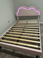 1 review for Full Bed Frame for Girls with Adjustable Cloud Headboard, Velvet Upholstered & RGB Lights, 7.1″ Underbed Storage, Customized