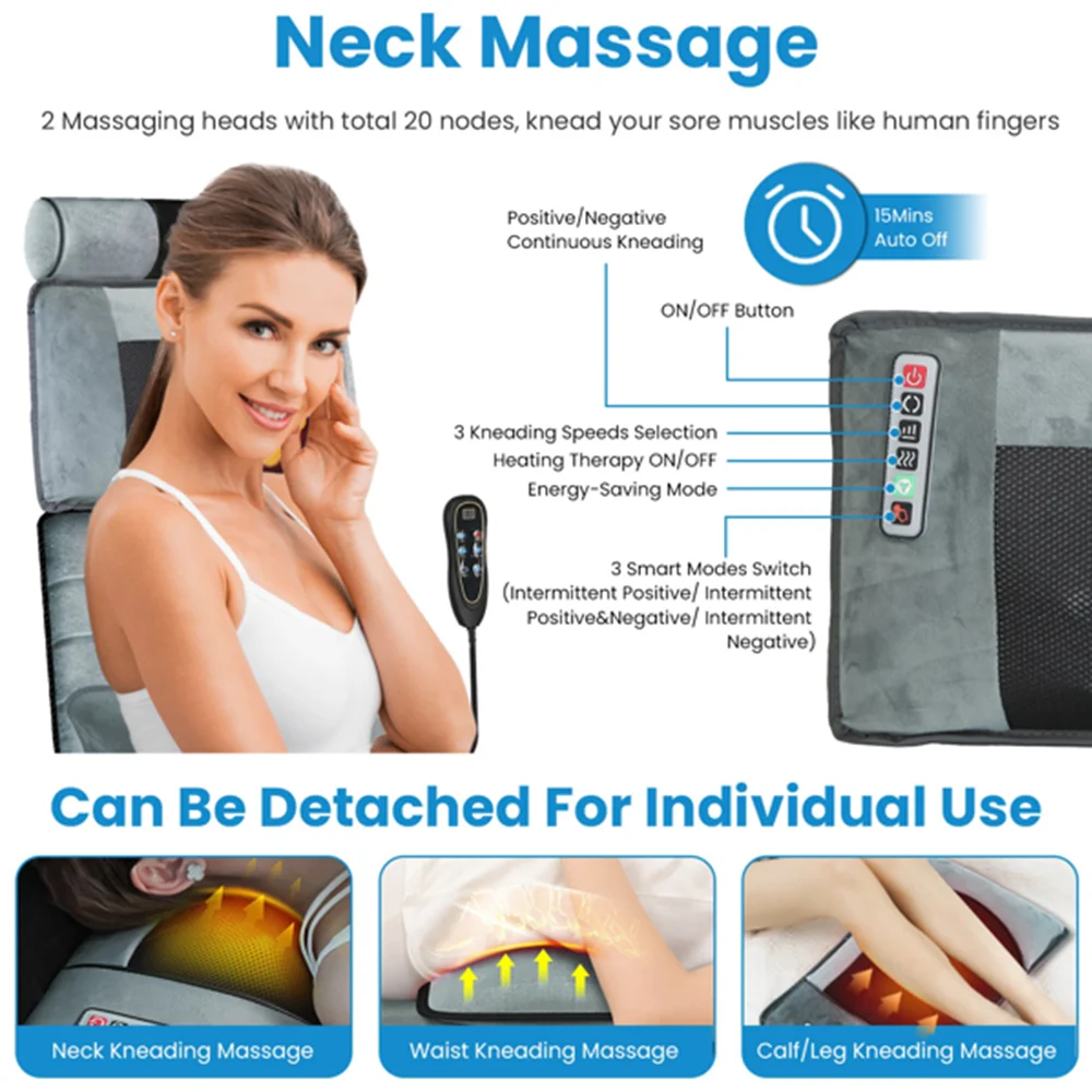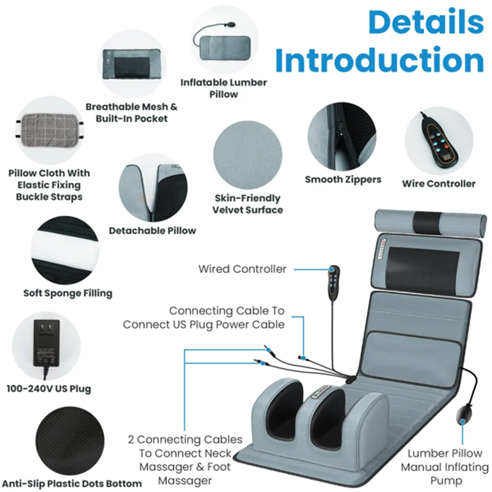 Full Body Vibration Massage Mat with Neck & Foot Massager Full Body Heated Massage Mat Electric Shiatsu Back/Neck/Leg Massager