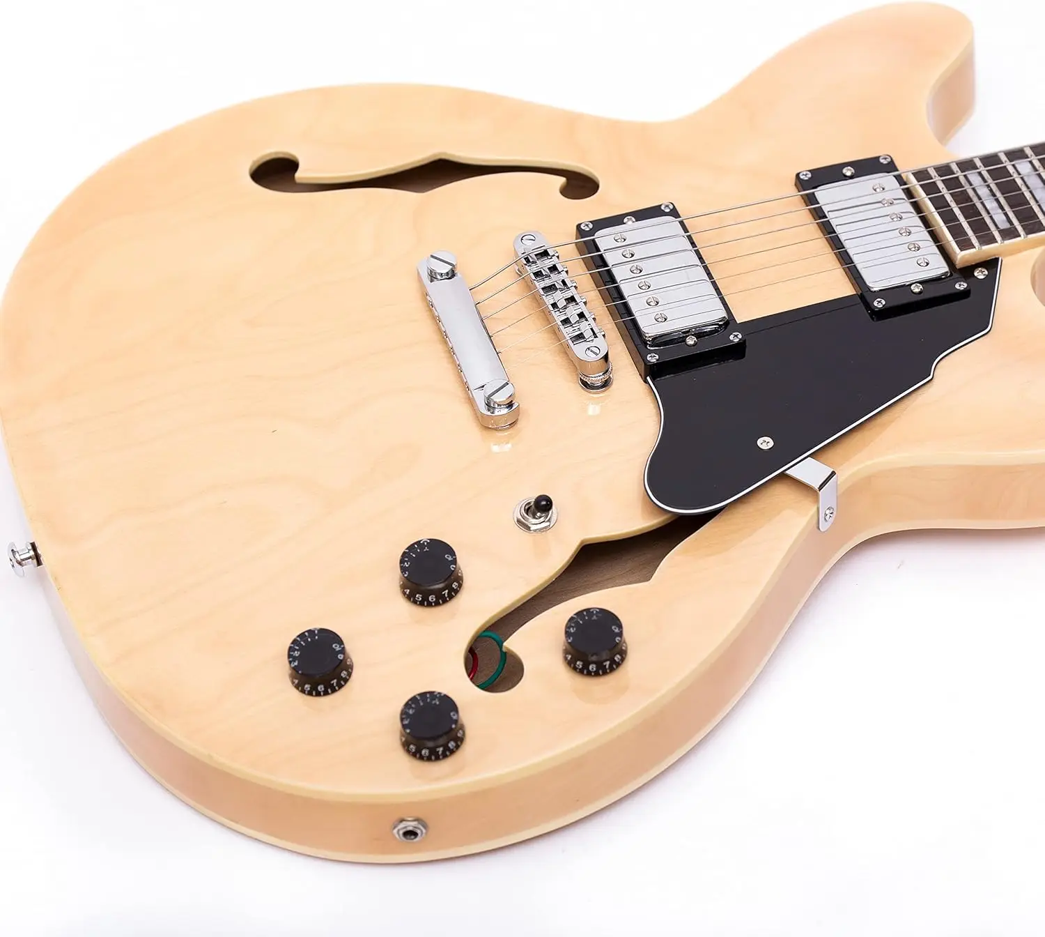 Semi-hollow guitars have a very good resonance performance and a warm, rounded tone, with that classic warm jazz guitar sound that makes a full, fat, clean sound in the low end. With maple body tone more tight and clear. |