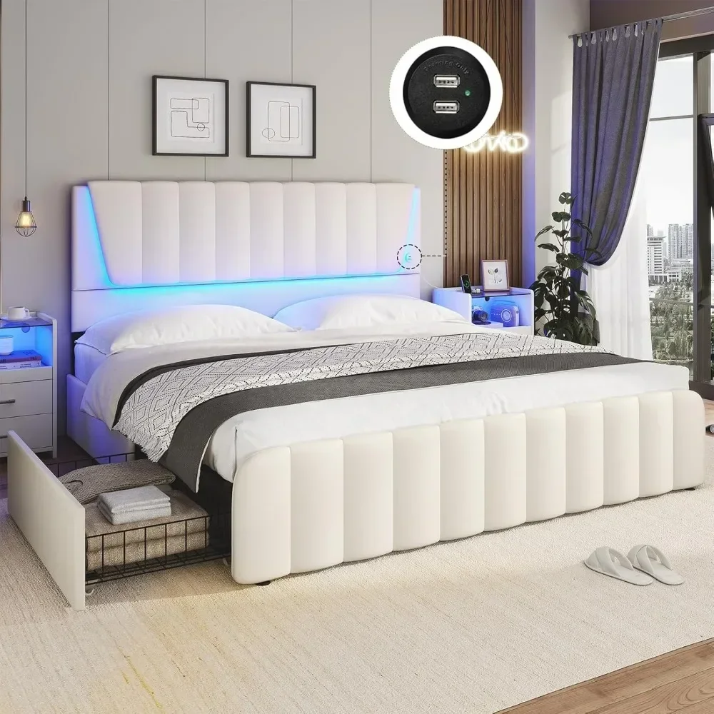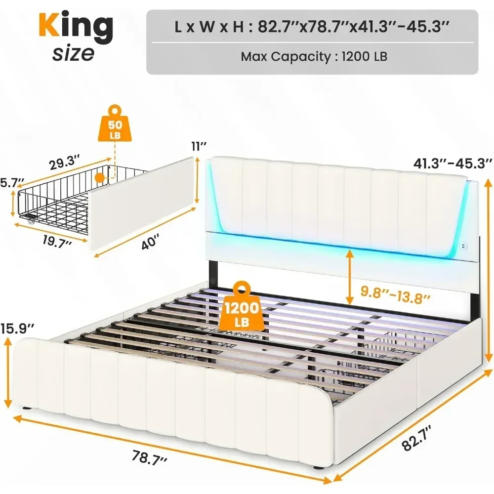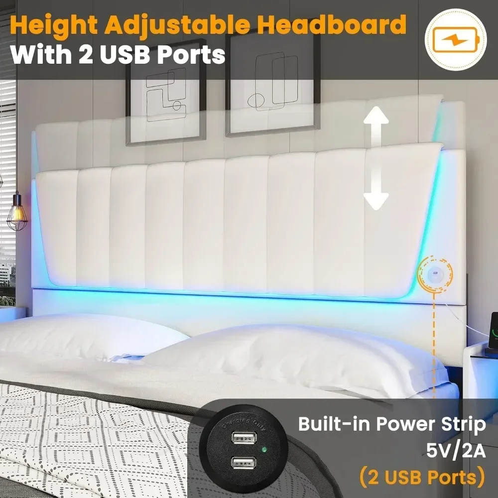 - *️⃣【Adjustable Led Headboard with 2 USB Ports】 The headboard with LED lights has two height adjustments to accommodate mattresses from 10-13 inches. Moreover, this queen platform bed frame has 2 USB Ports on the headboard, which make it more easy for you to charge mobile phone, tablet, or computer, when you on the bed.