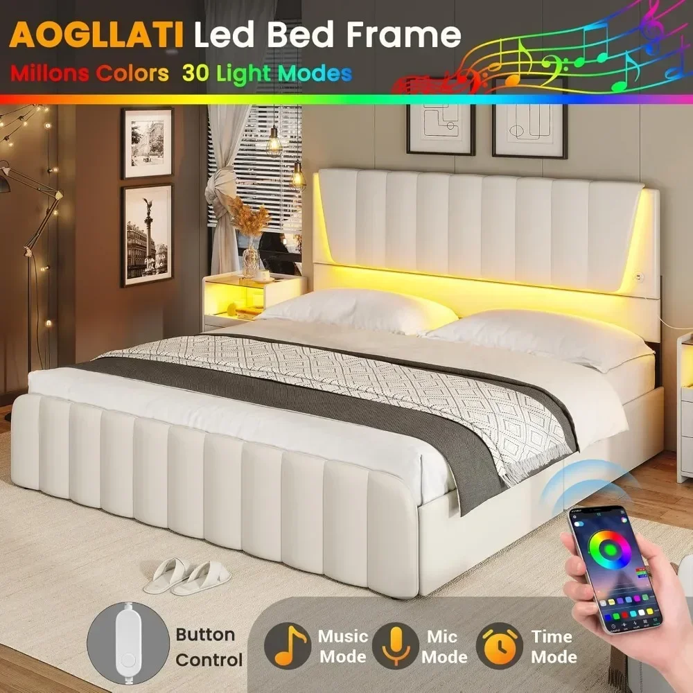 - *️⃣【Led Bed Frame with Multi-Colors Lights】This queen bed frame with headboard has beautiful multi-color RGB led backlight; the colors and brightness can be controlled by APP, and you can easily change the brightness, dynamic modes, speed of the colored lights. This queen size bed frame will create a beautiful ambiance and enhance emotional appeal of bedroom in dark environment.