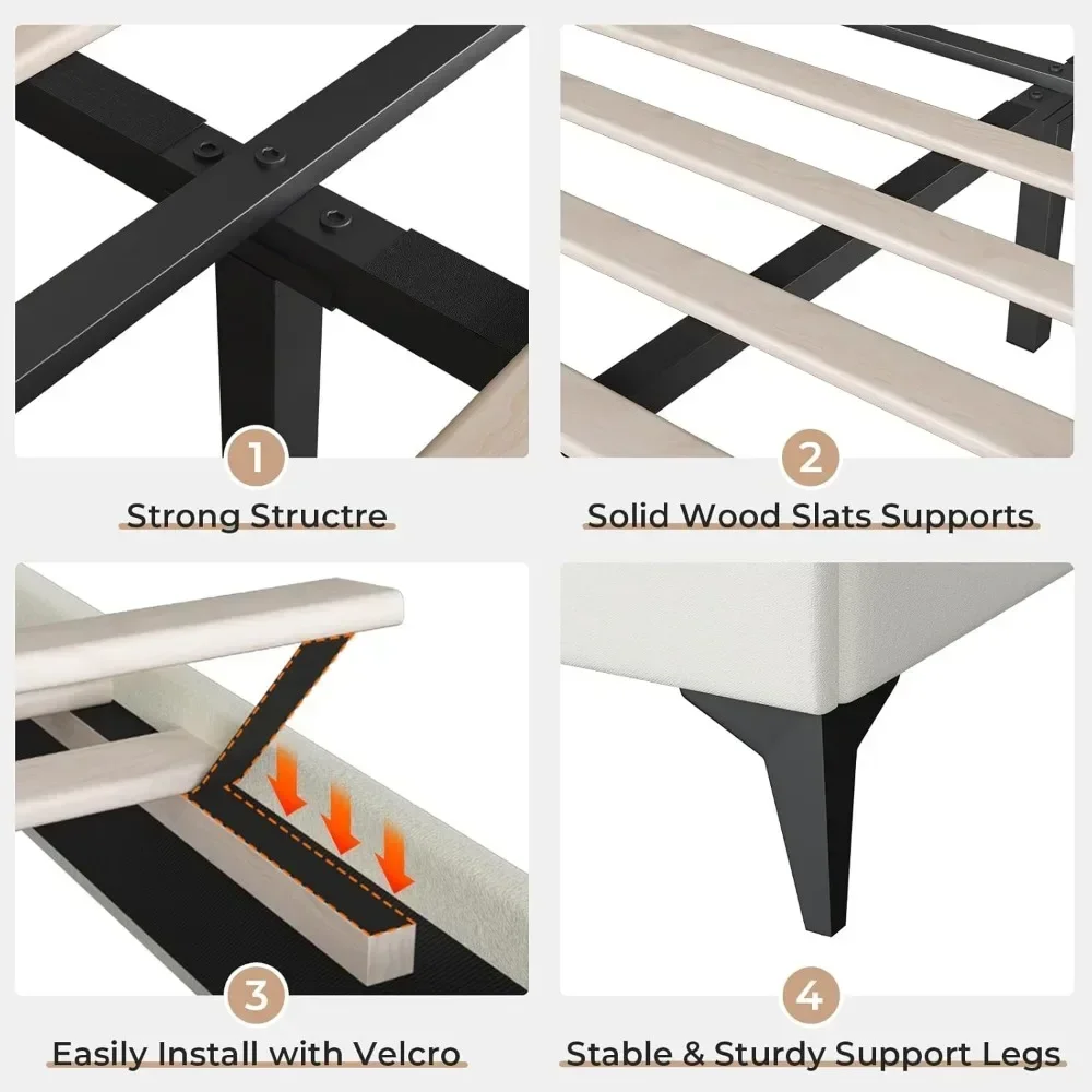 - Stable & Noise-free Platform Bed: The adjustable upholstered headboard platform bed frame made of sturdy steel frame with solid wooden slats and no-slip pad of bed legs ensuring durability and stability. Easily loading 800 lbs. No-nosie design give you quiet sleeping environment.