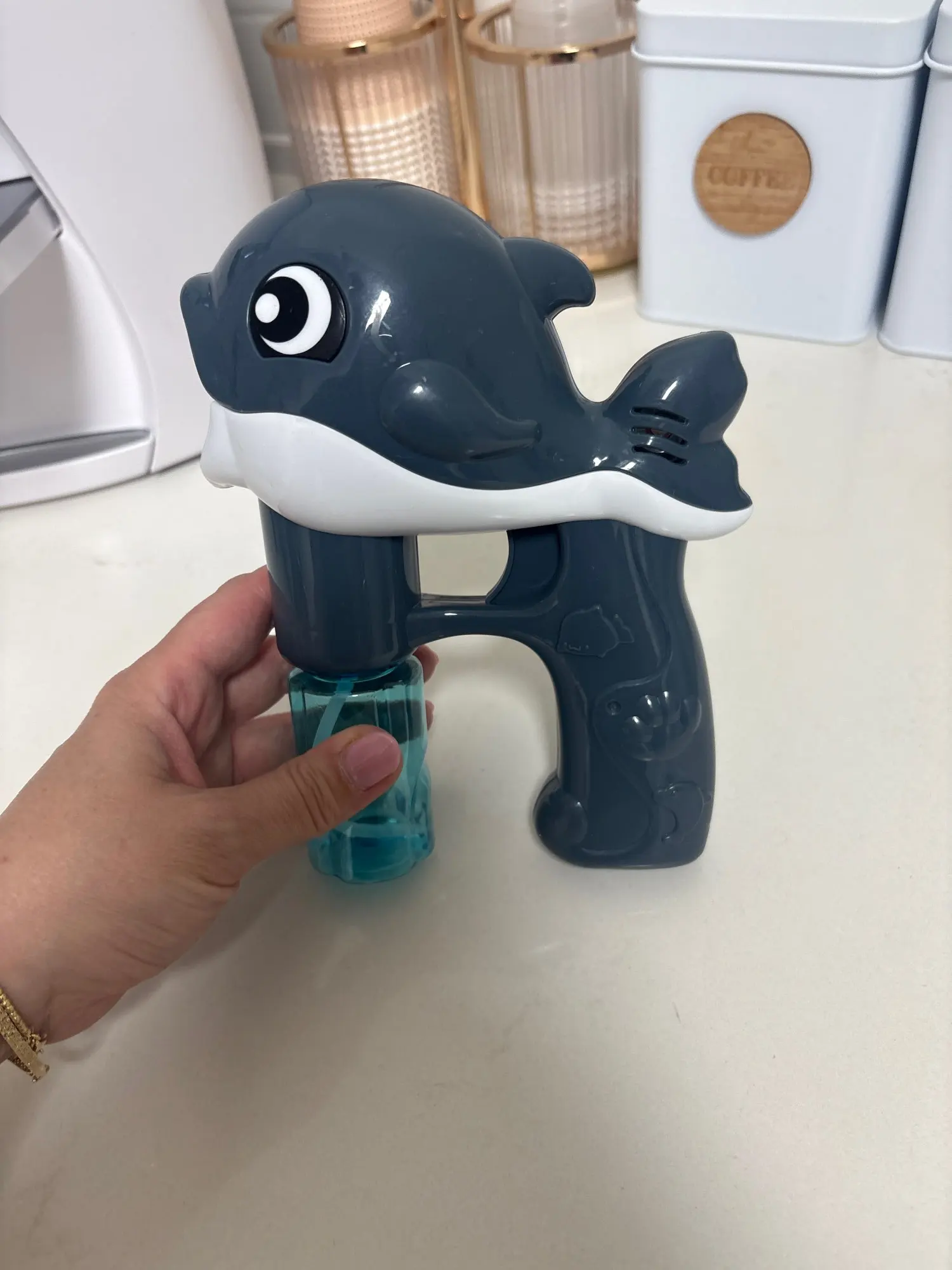 Good product, nice and fun with a little music so it shoots bubbles.