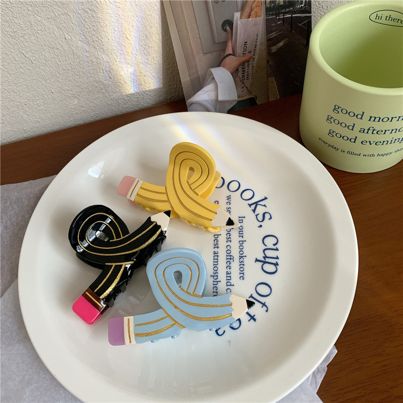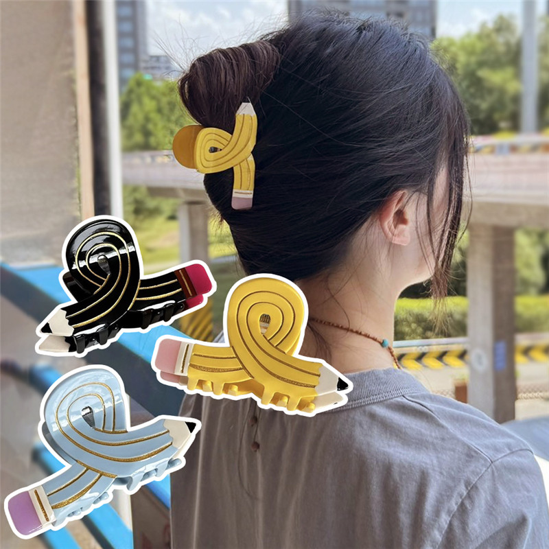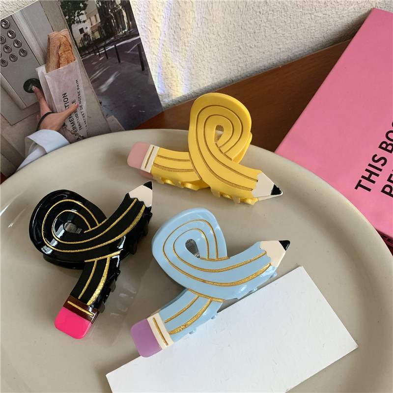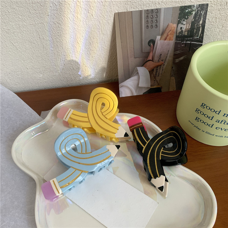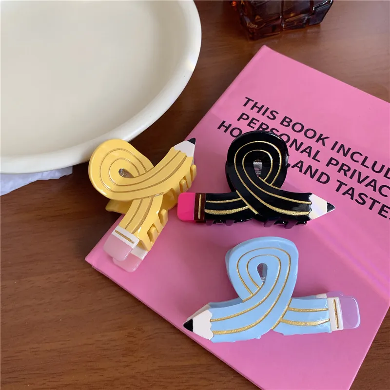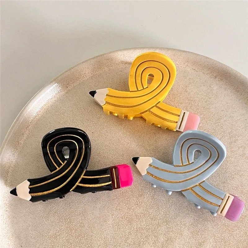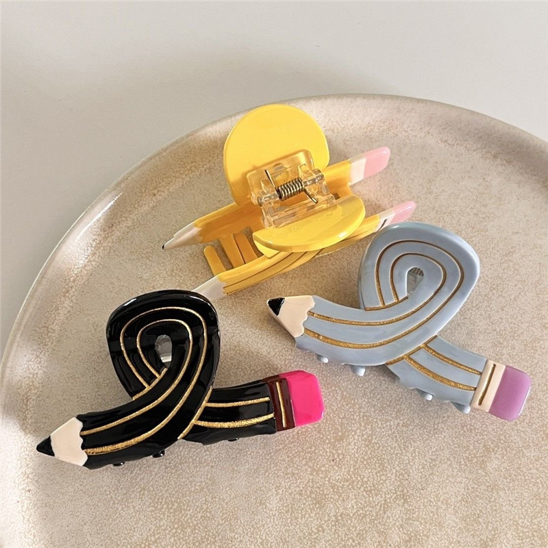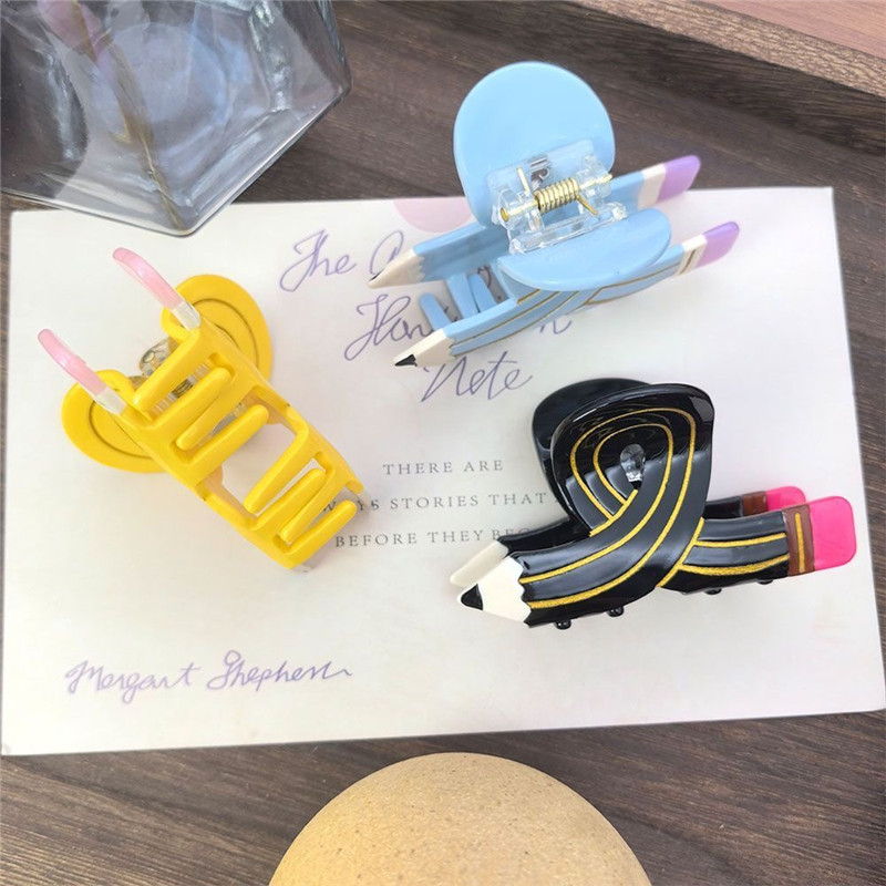 Funny Colored Pencil Hair Claw Creative Design Acetate Hair Claw Clips Shark Catch Hair Accessories For Women Girls