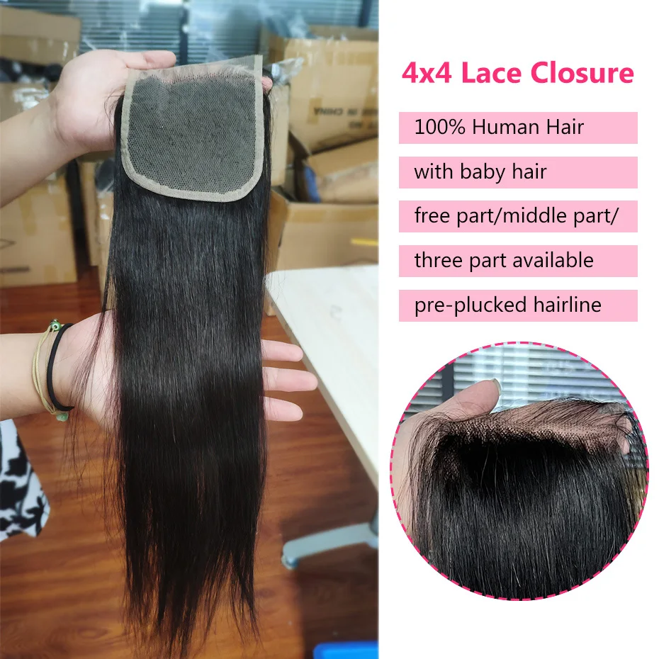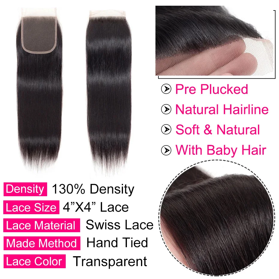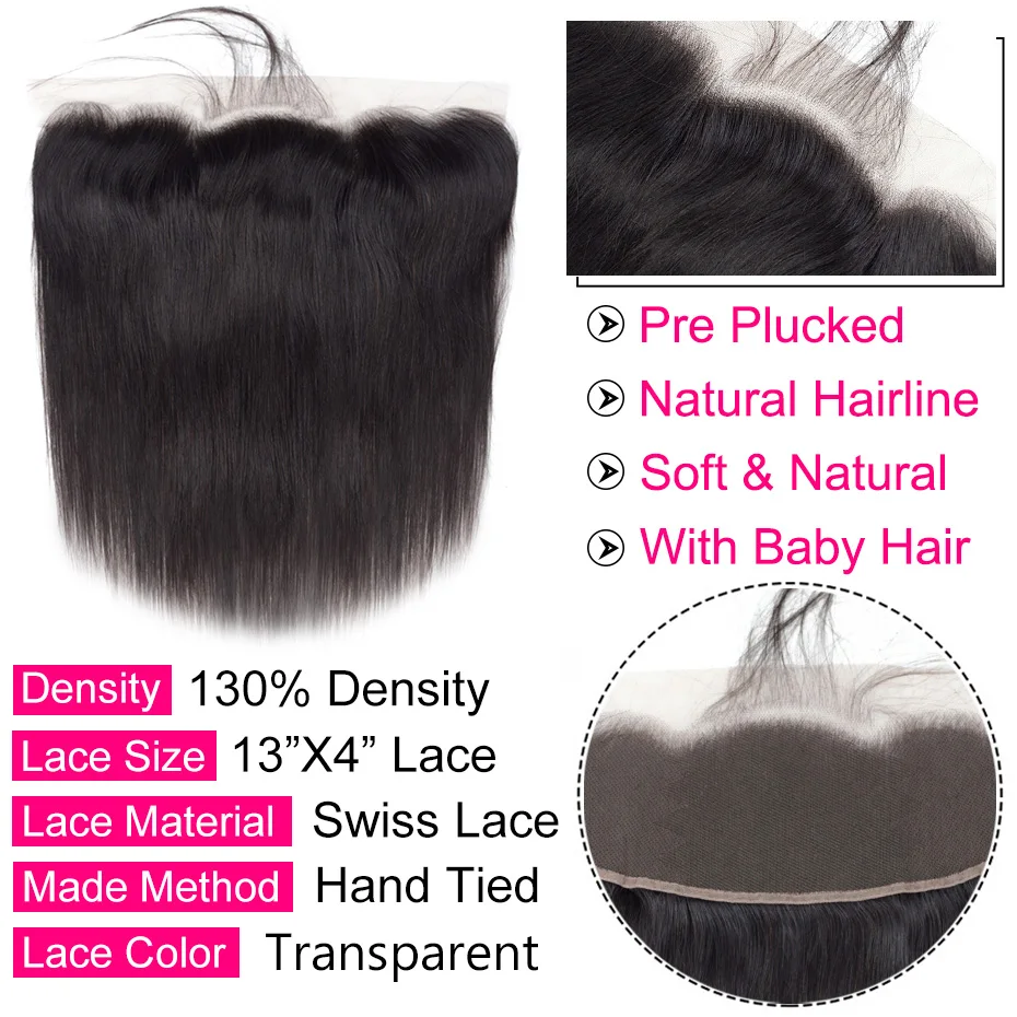 Gabrielle 13×4 Lace Frontal Brazilian Straight Human Hair 4×4 Lace Closures Only Pre plucked Natural Color Remy Hair 8-22 Inch