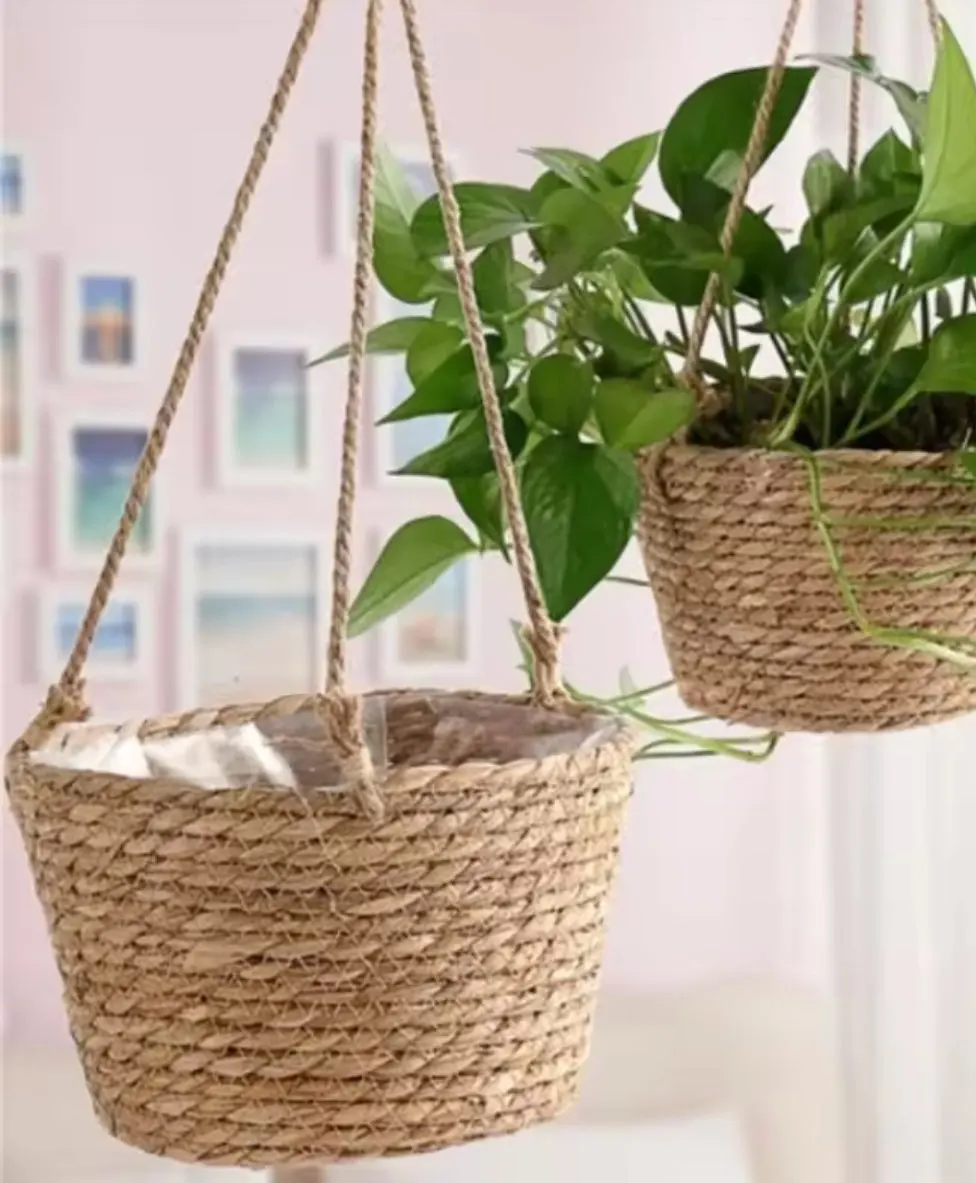 – Hanging plant basket is great for display potted plants and flower pots, adds modern flair and minimalist to your home decor. To hung with sturdy cotton strings that displays your favourite potted plants and flower pot in the air or window side very well.
