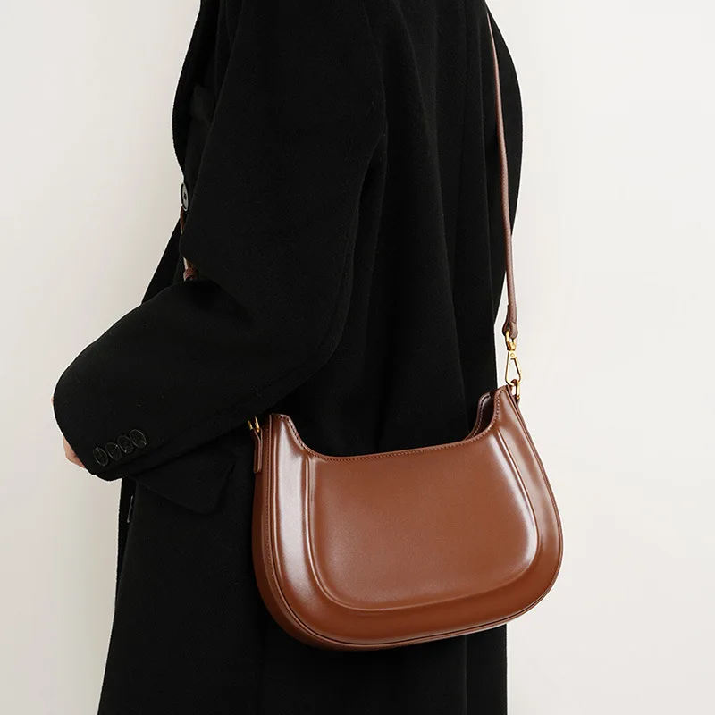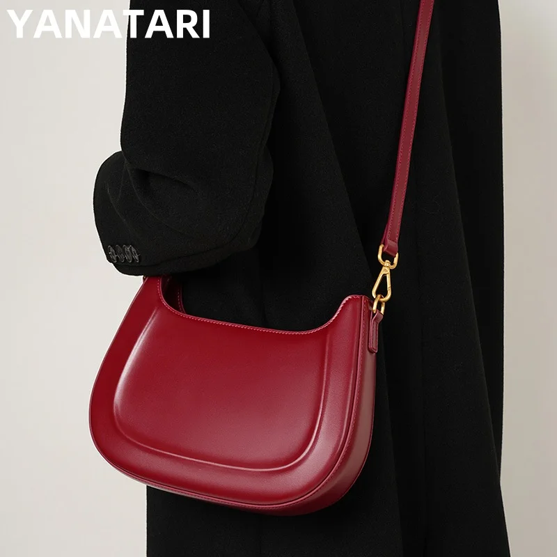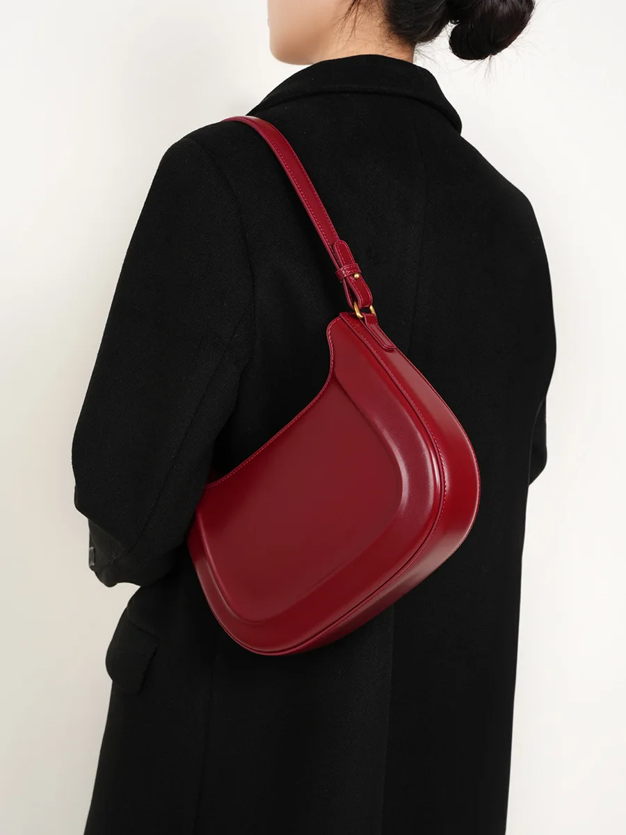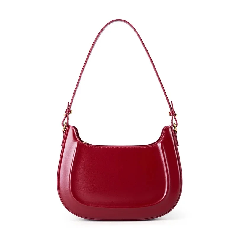 Genuine leather red shoulder bag woman minimalist crossbody bag cowhide handbags female luxury bag armpit bag saddle bag
