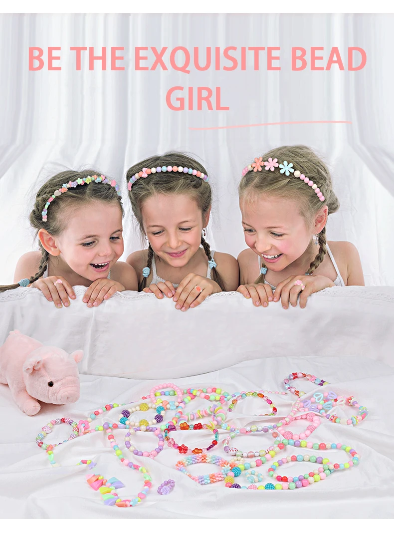 Girls DIY Bead Set Jewelry Making Kit for Kids Girl Pearl Beads for Bracelets Rings Necklaces Creativity Kits Art Craft
