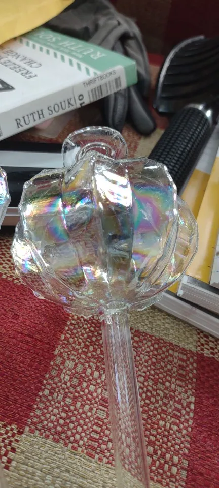 The glass is clear – and shows rainbow colors in the light! They are both functional and beautiful. I bought them to insert into the tops of my moss poles.