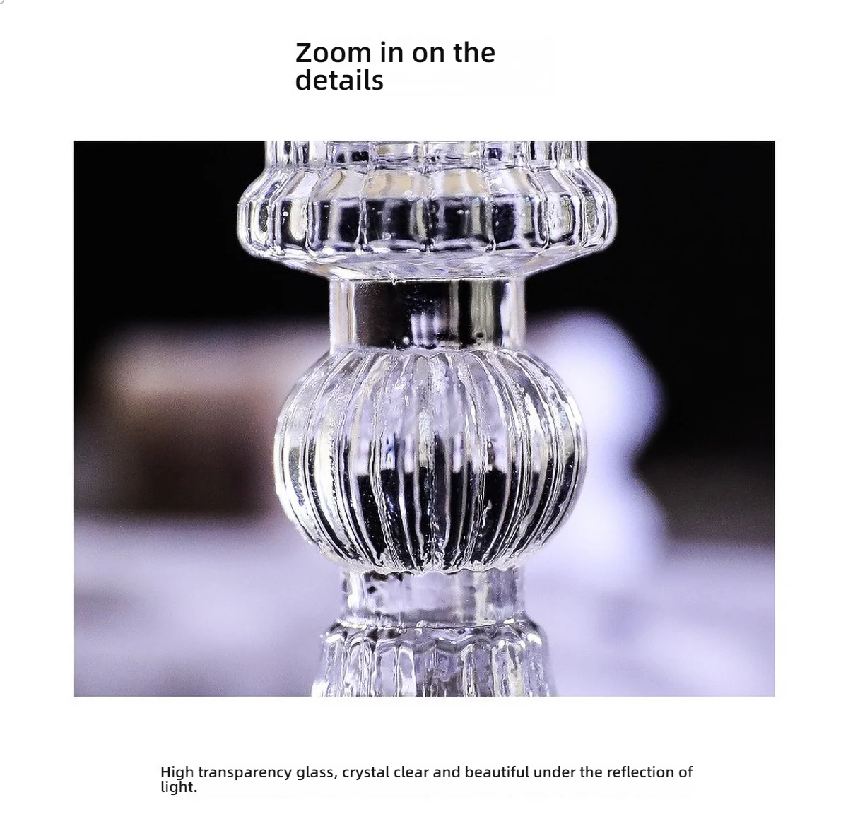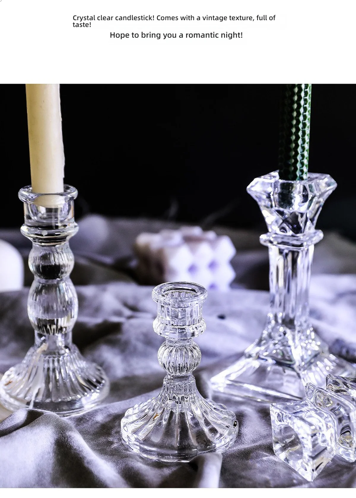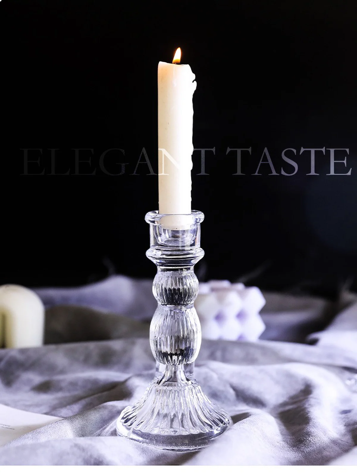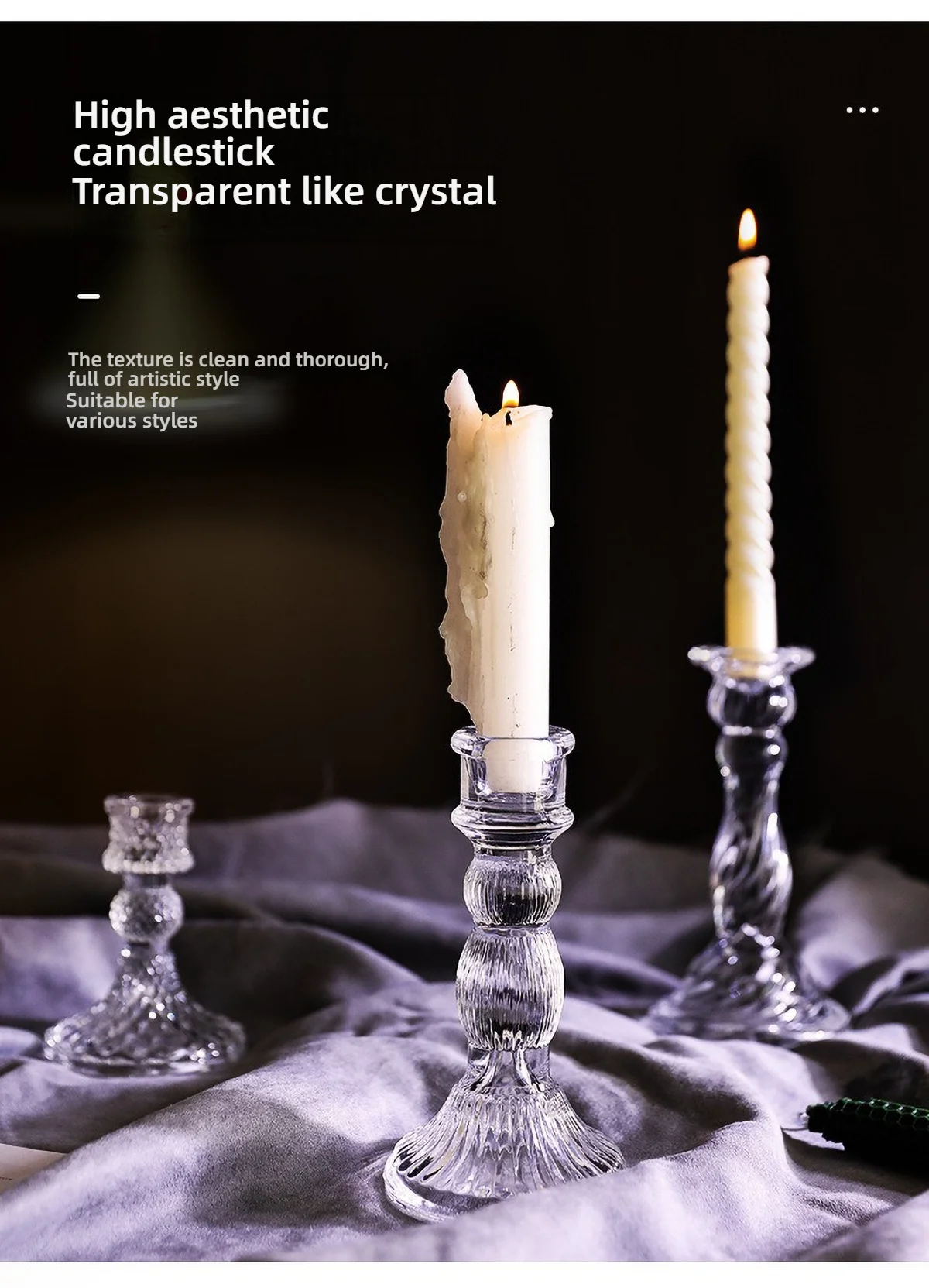 Glass Candle Wick Holder Clear Pillar Table Design Candlestick for Dining Decor