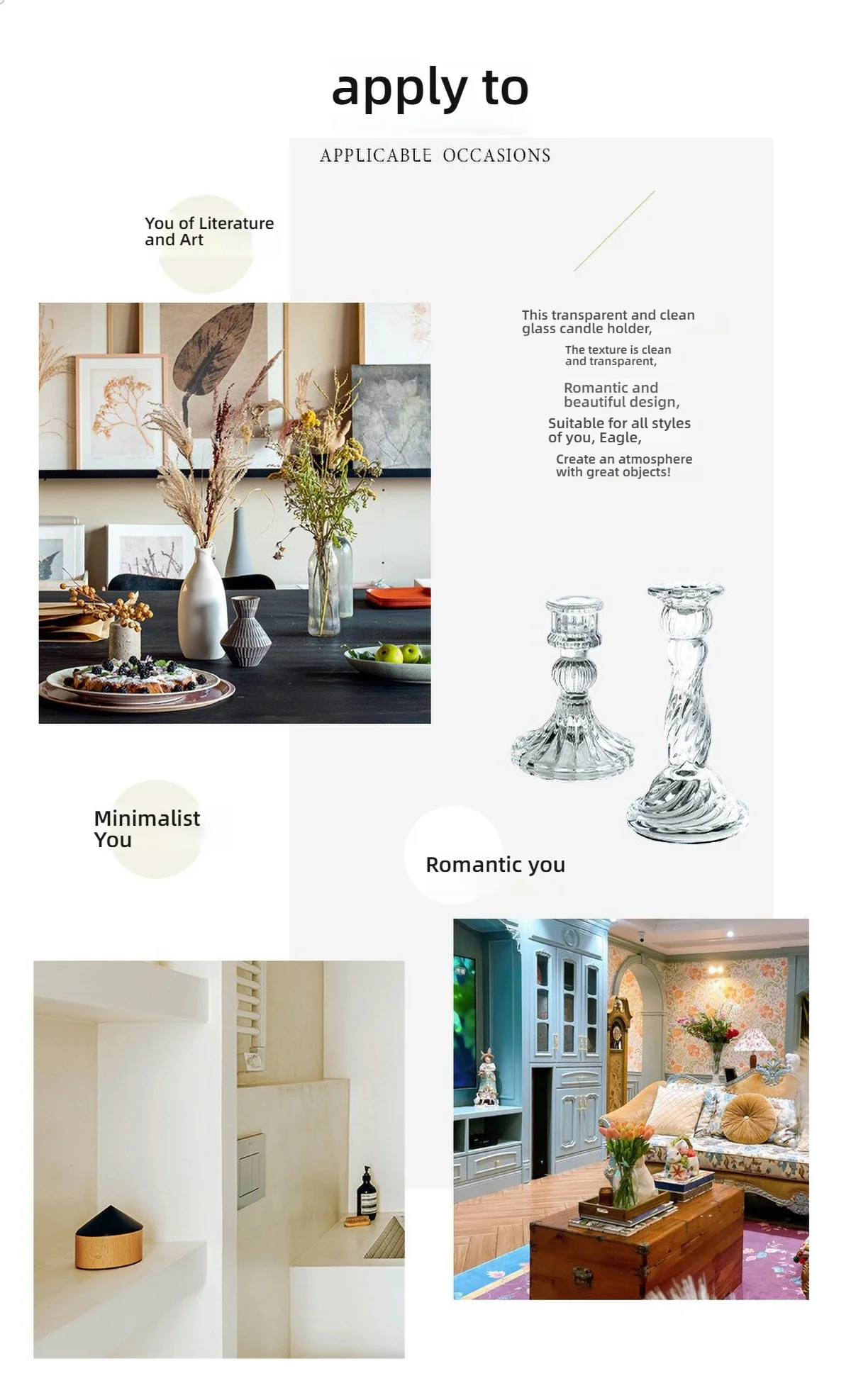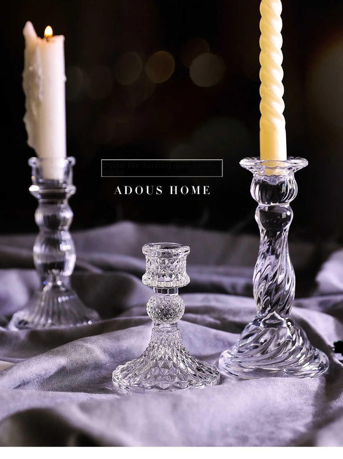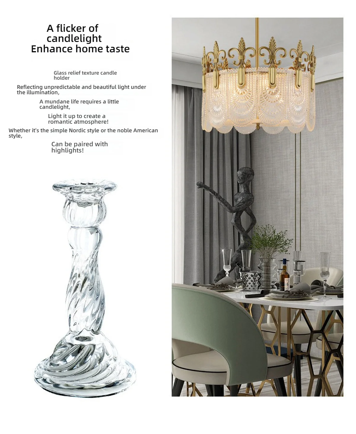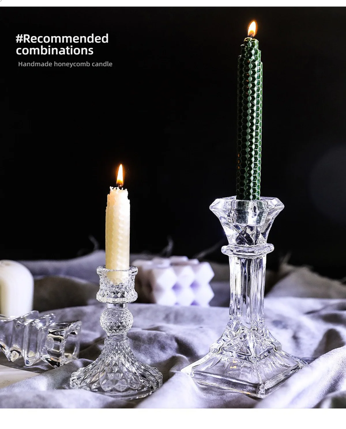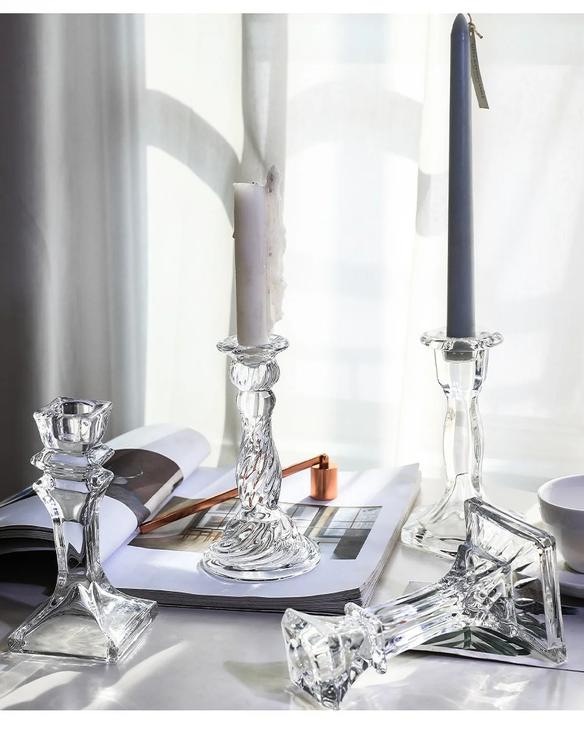 Glass Candle Wick Holder Clear Pillar Table Design Candlestick for Dining Decor