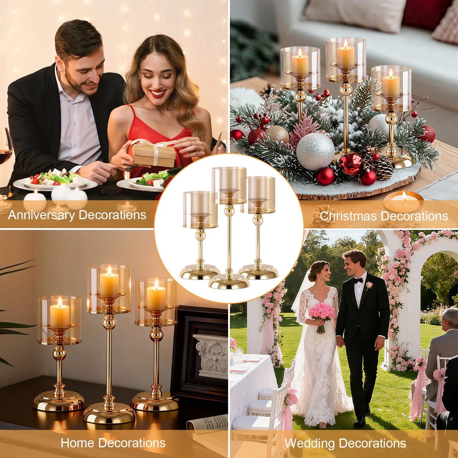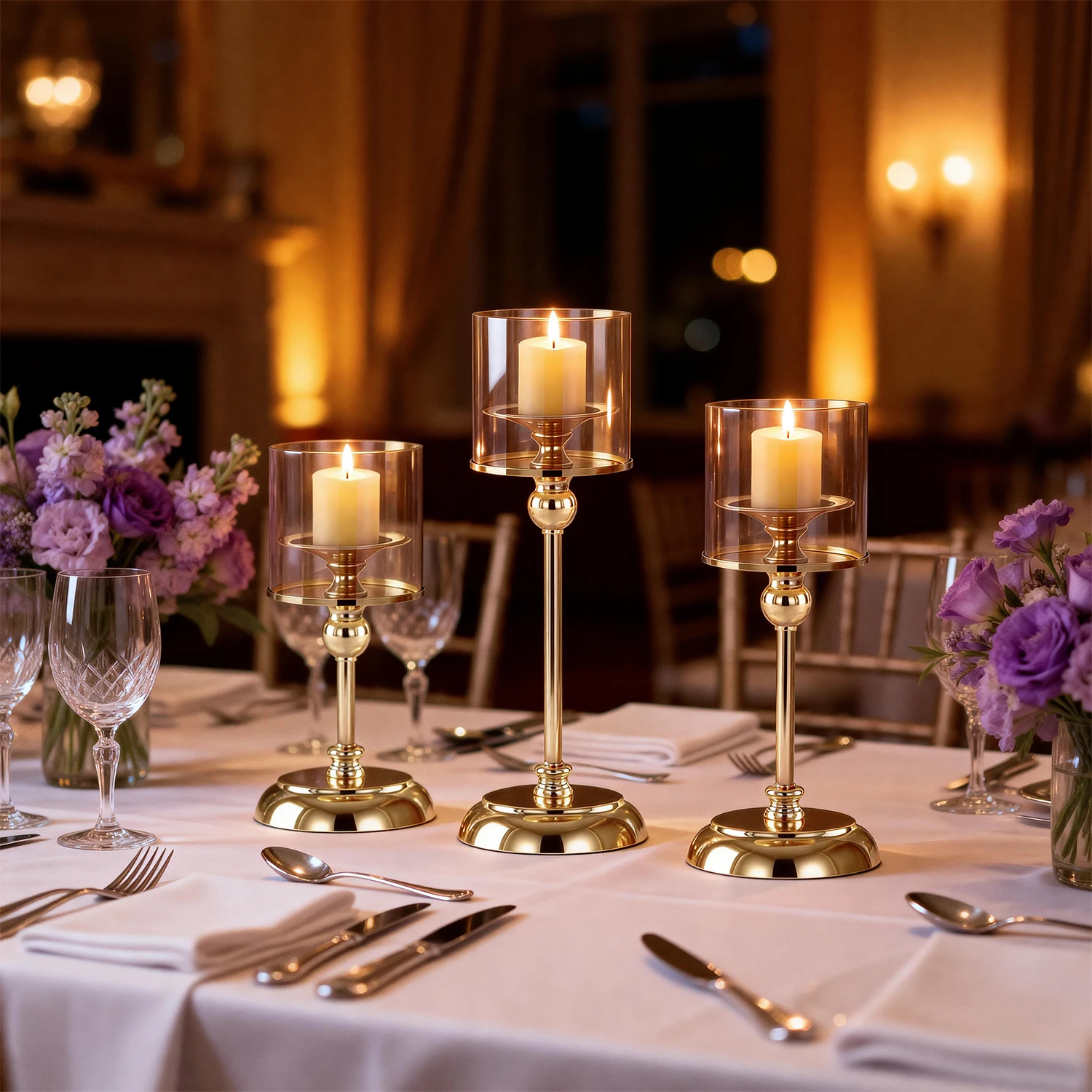 Glass Pillar Candle Holder Set Golden Silver Decorative Candlestick for Wedding Party Table Festival Decor 2026 New Fashion