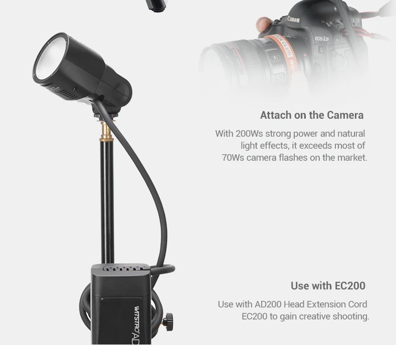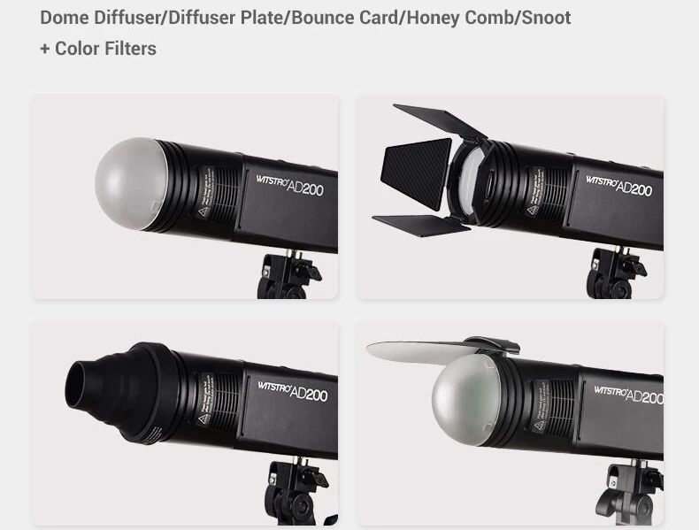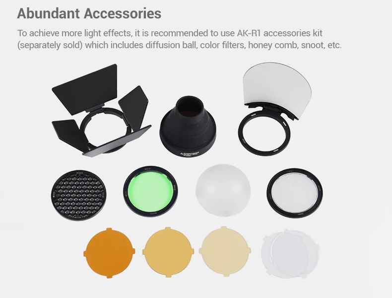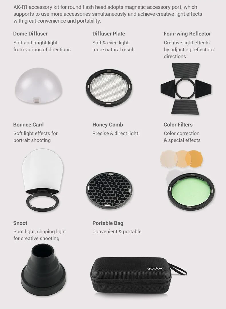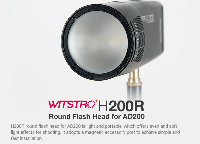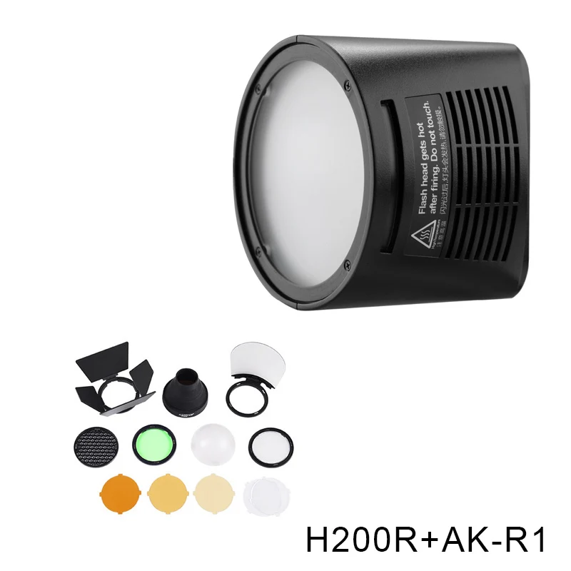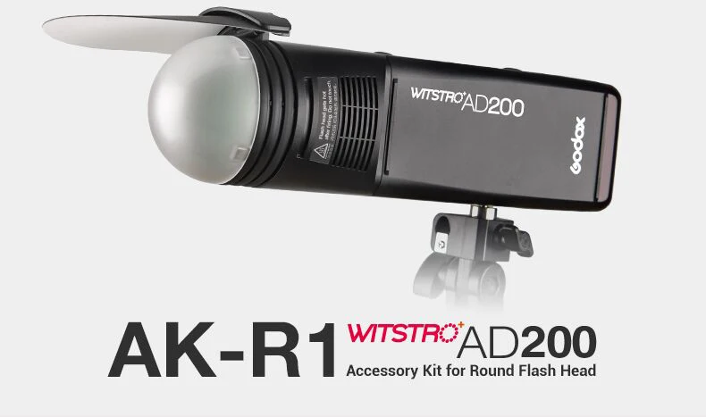 Godox AD200 V1 PRO Flash Accessory WITSTRO H200R Round Flash Head and EC-200 Extension Head AK-R1 Color temperature reflector