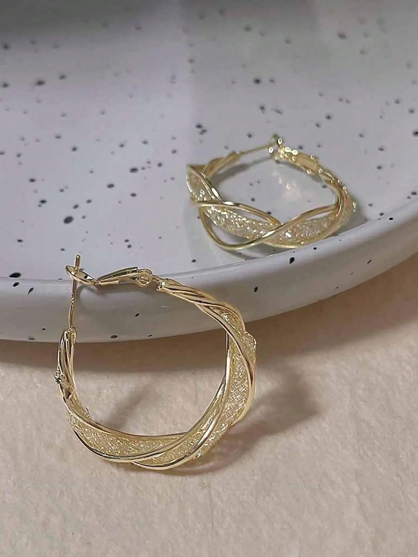 :Gorgeous Intertwined Gold Color Hoop Earrings With Intricate Mesh Stylish Style Earrings For Women Party Gift Jewelry