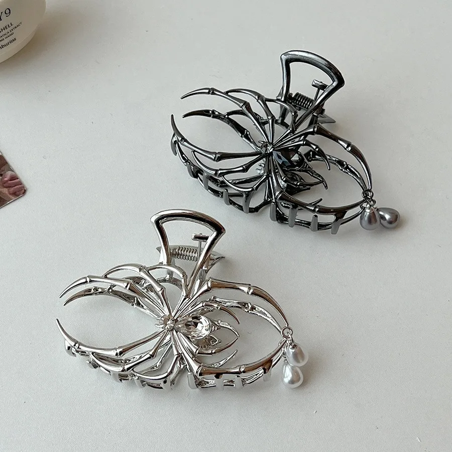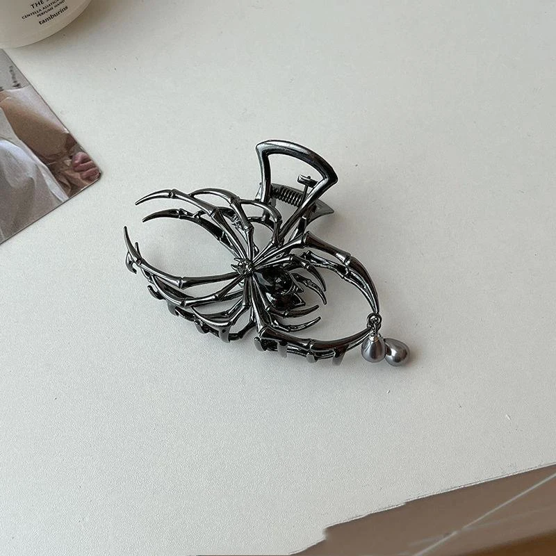 Gothic Spider Shaped Hair Claw Clip for Women Hollow Out Metal Imitation Pearl Shark Clips Charms Cool Girls Hair Accessories M