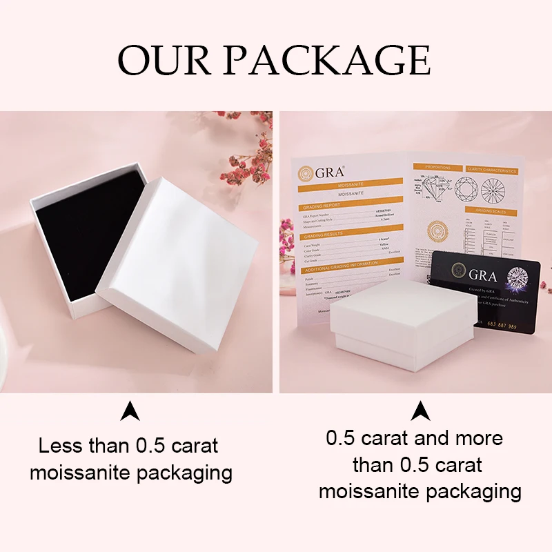 Because moissanite stone less than 0.5 carat is too small to be engraved with the Moissanite certificate code, the Moissanite less than 0.5 carat is not provided with the Moissanite certificate.