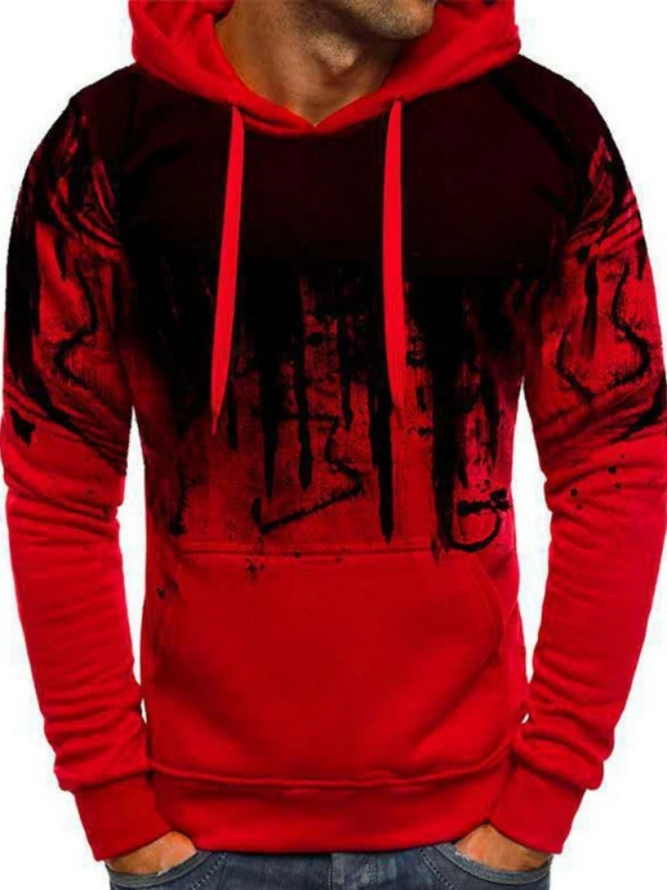 Gradient Print Men's Pullover Hooded Sweatshirt Spring Autumn Daily Fitness Sportswear Fashion Casual Hoodies Loose Clothing