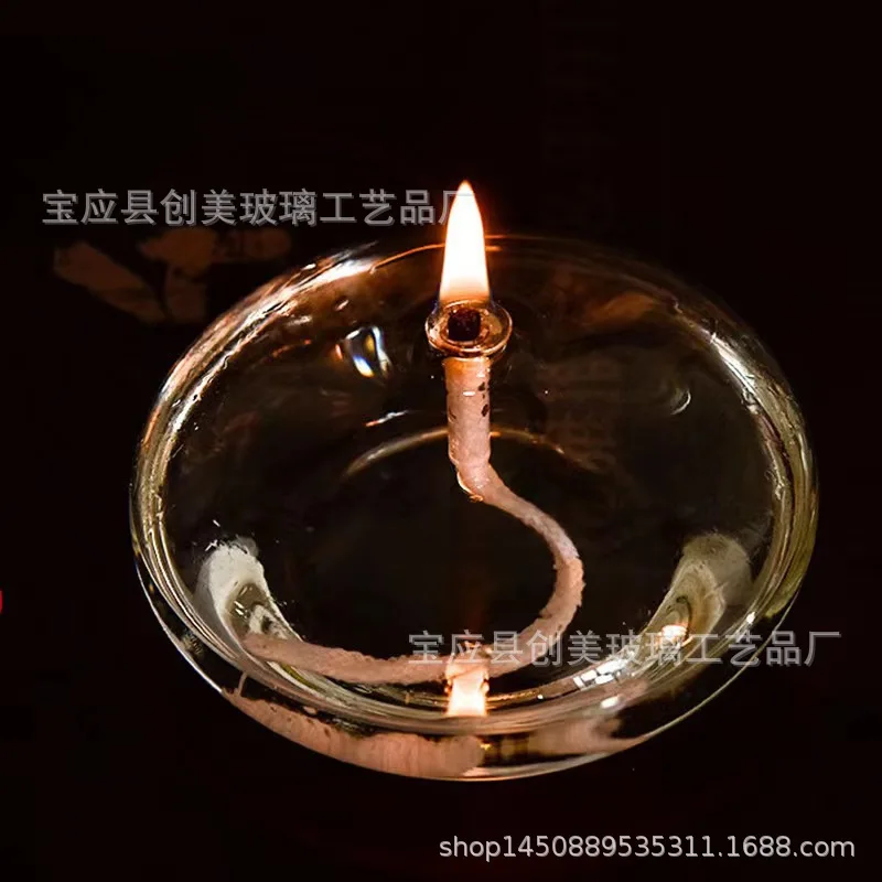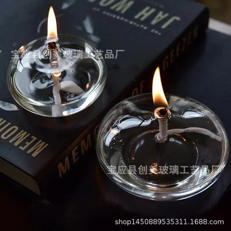 Handcrafted Flat Transparent Glass Candle Holder Oil Lamp,With a light core,Can be used as table candles,Christmas home decor at