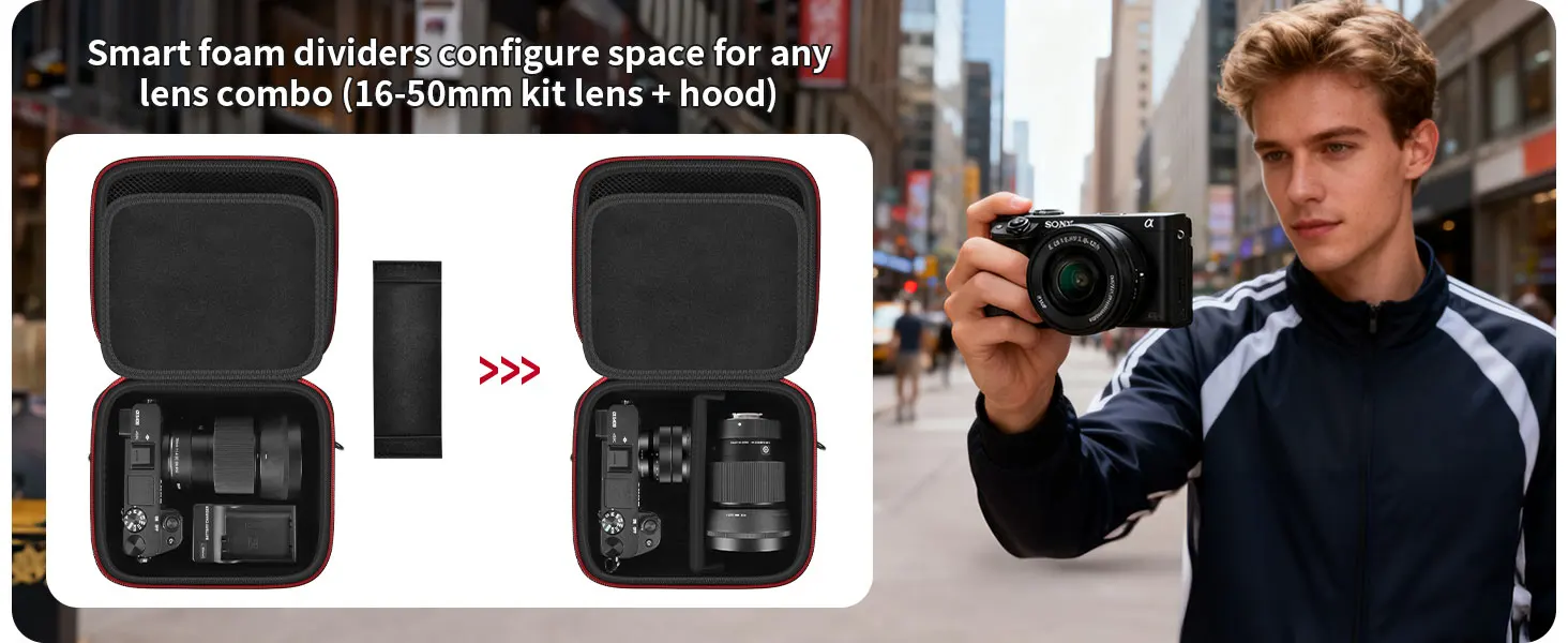 16 reviews for Hard Camera Case for Sony ZV-E10 A6400 A6000 A6100 A6600 A6500 (Medium,Kit Lens Only),Protective Bag with Shoulder Strap & Divid