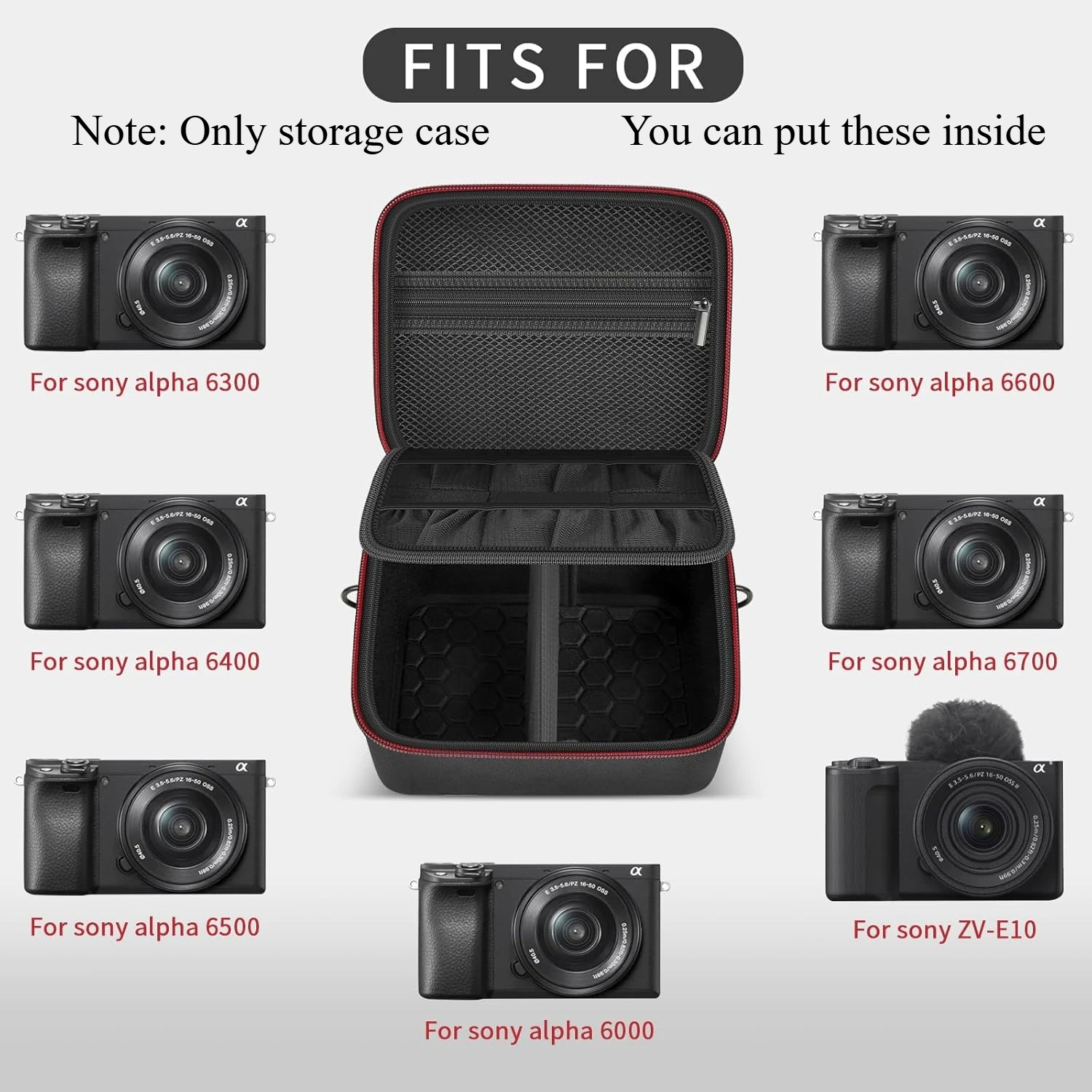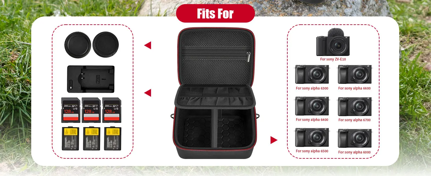 1 camera case only. Camera & accessories are NOT included.Perfectly fits Sony ZV-E10 A6400 A6000 A6100 A6600 A6500 A6700 A5000 A5100. Also compatible with Ricoh GR III & Fujifilm XT30II.