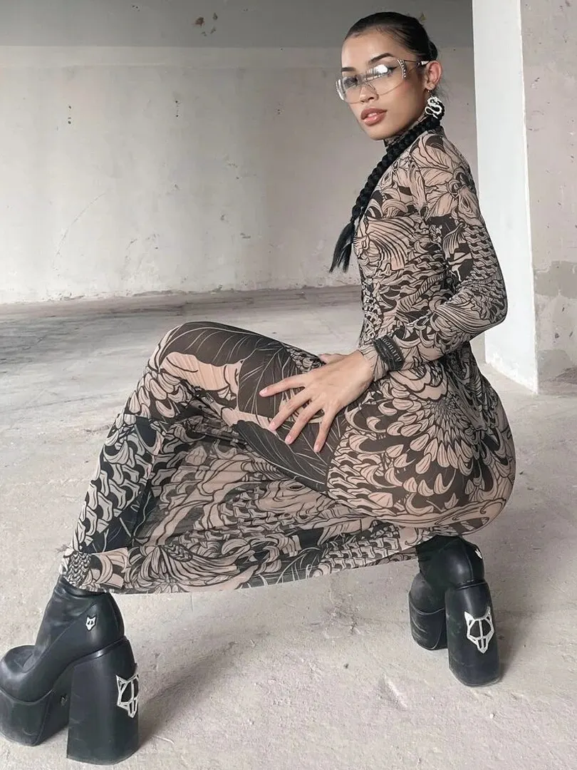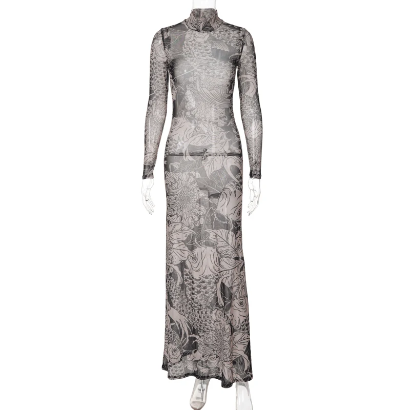 Hawthaw Women 2023 Autumn Winter Long Sleeve Mesh See Through Streetwear Bodycon Long Dress Wholesale Items For Business