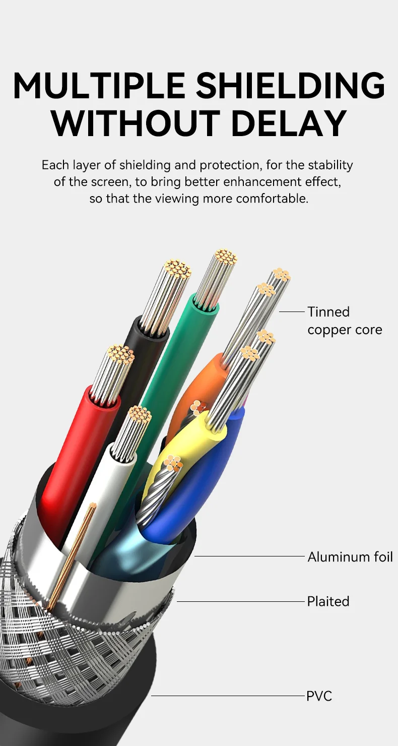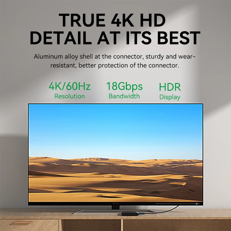 High speed: HD Cord 4K@60Hz Cable support resolution up to 3840 x 2160 3D , and 18Gbps band with high level of EM resistance, providing vivid visual experience.