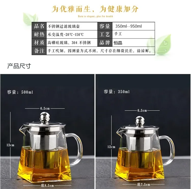 Heat Resistant Glass Teapot With Stainless Steel Coffee Infuser Heated Container Tea Pot Good Clear Kettle Square Filter Baskets