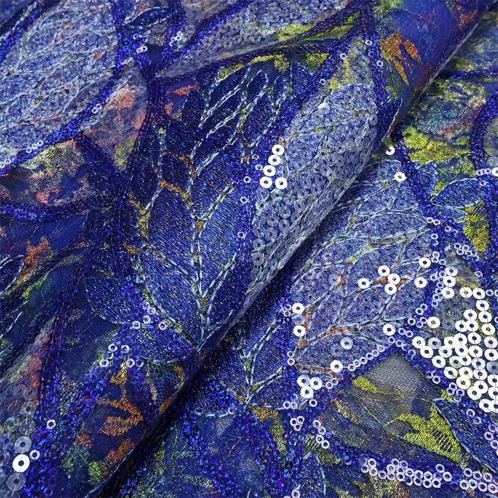 2023 Blue 3D Flower Lace Fabric With Pearls High Quality French Heavy Bead Tulle African Fabric For Wedding Party Dress Sewing